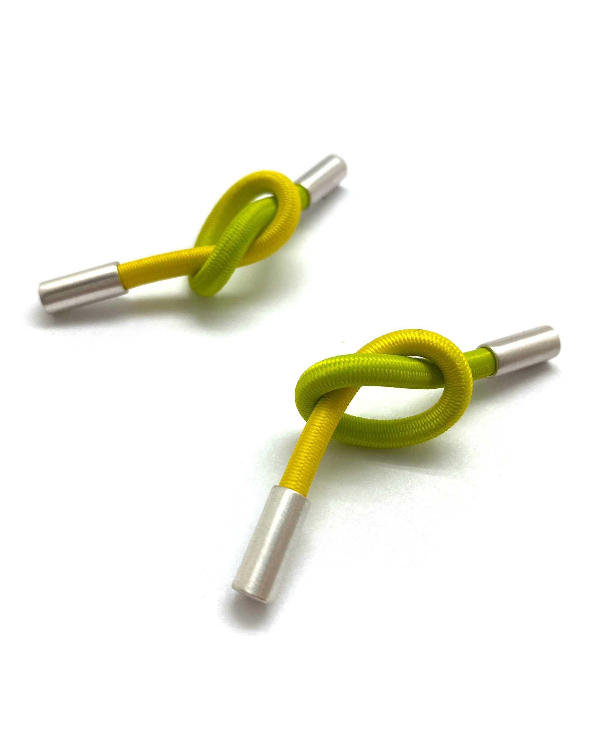 This post back pair from Gilly Langton mixes hand-dyed nylon and sterling silver into a...