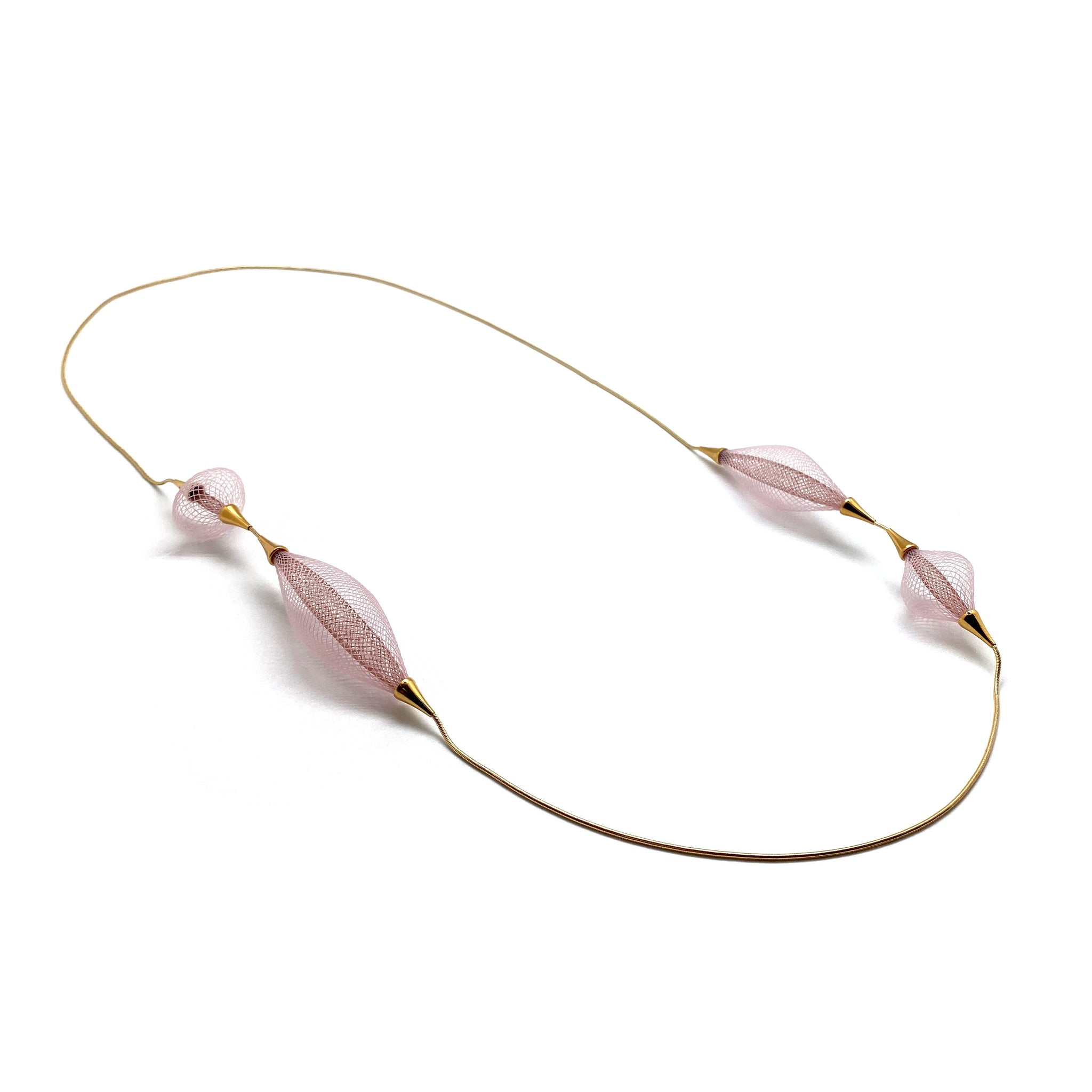 Pretty in pale pink, this Dorine Decayeux necklace features four of her signature nylon bulbs...
