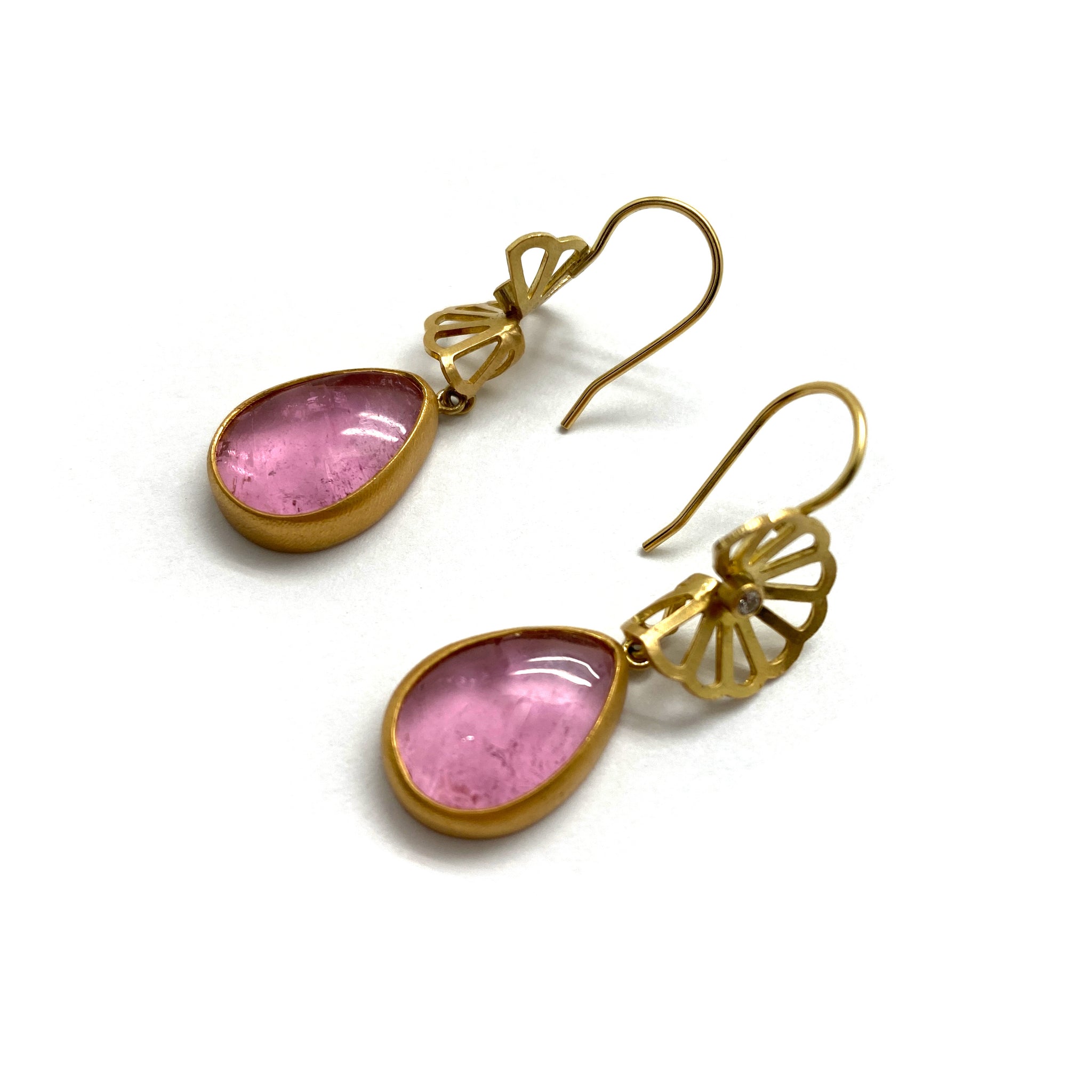 This one of a kind pair from Karin Jacobson pop with pink. Two large cuts...