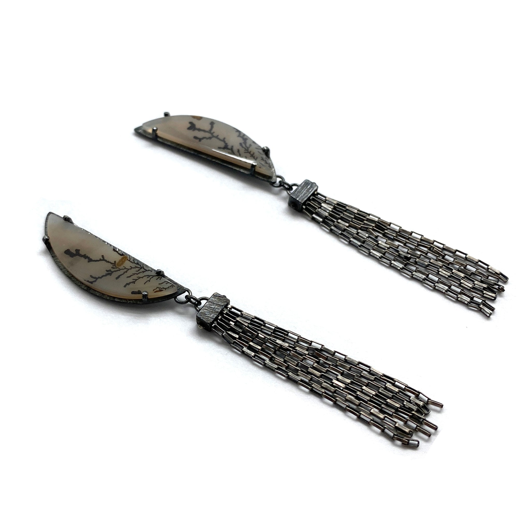 Flowing with oxidized sterling silver fringe, this pair by Heather Guidero are an effortless statement....