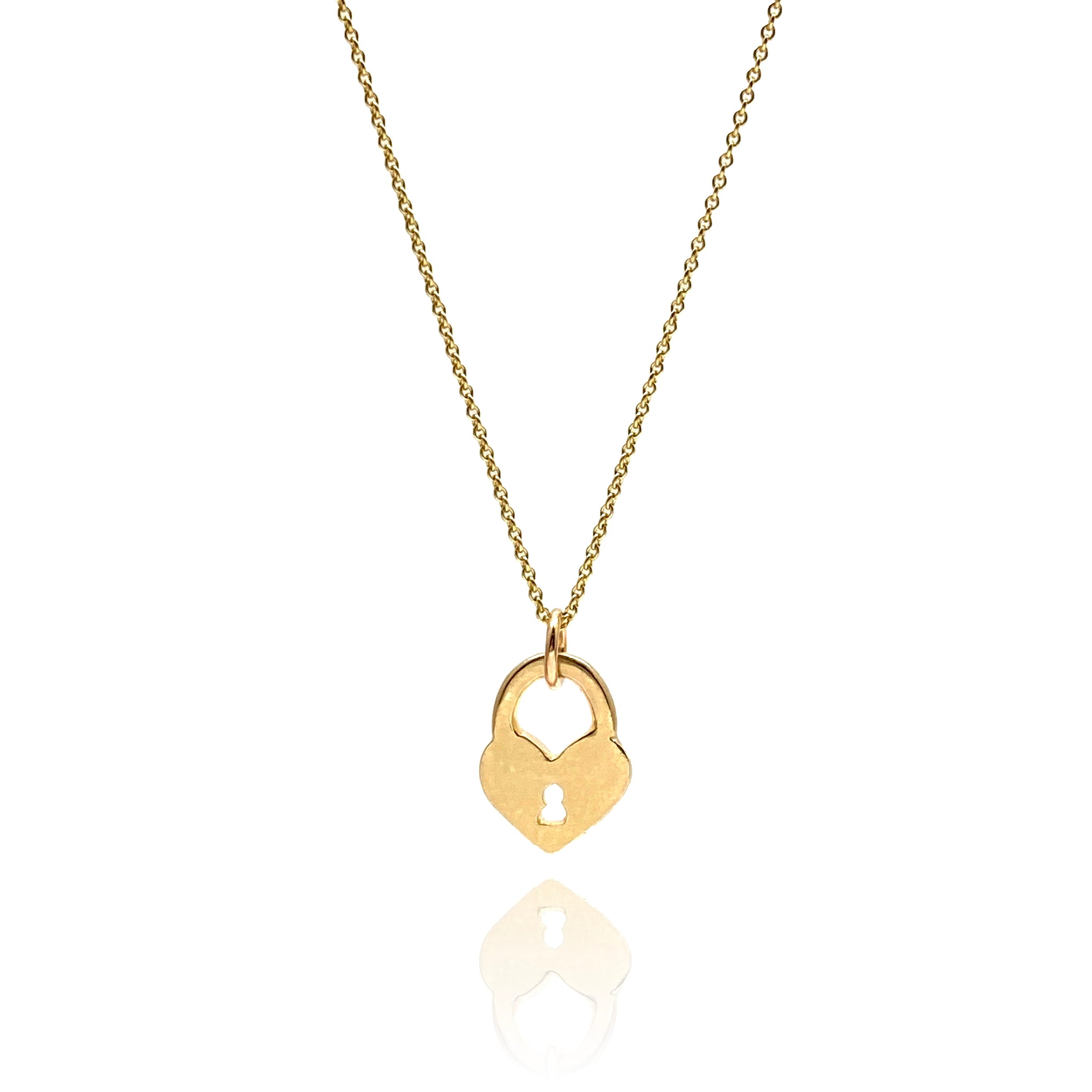 This petite gold pendant is a sweet staple necklace. The 18k gold lock is suspended...