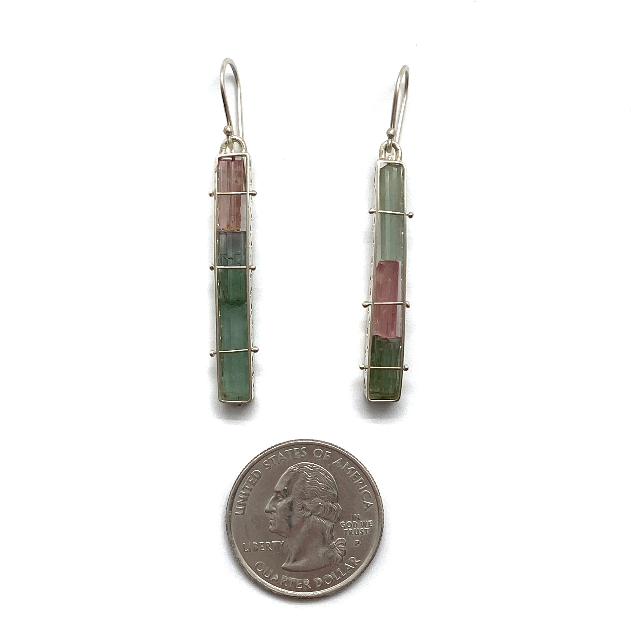 Made with Hilary Finck's signature stonesetting bar, these tri-color tourmaline earrings are a one of...
