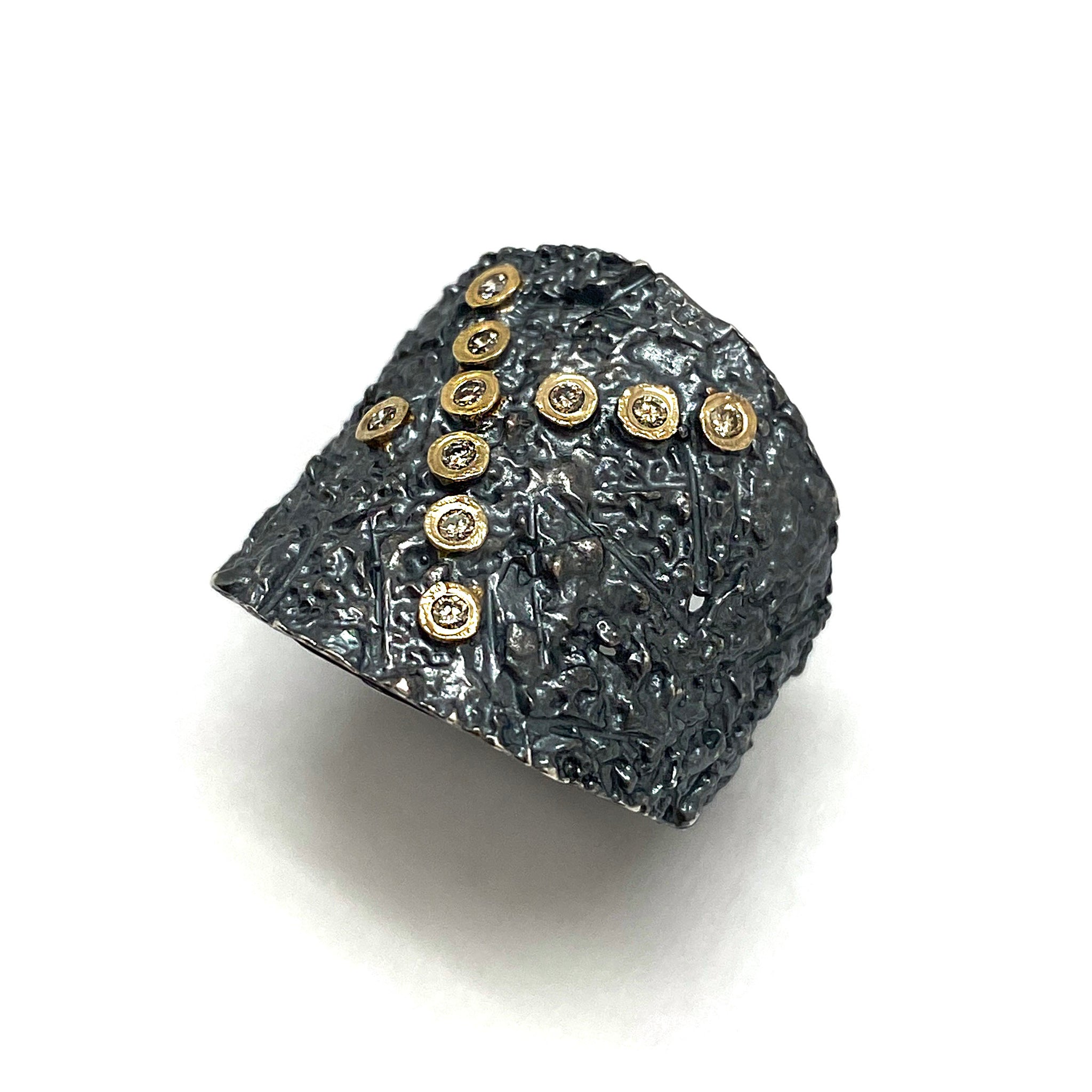 Made by Greek artist Apostolos Kleitsiotis, this ring is made with textured oxidized sterling silver with...