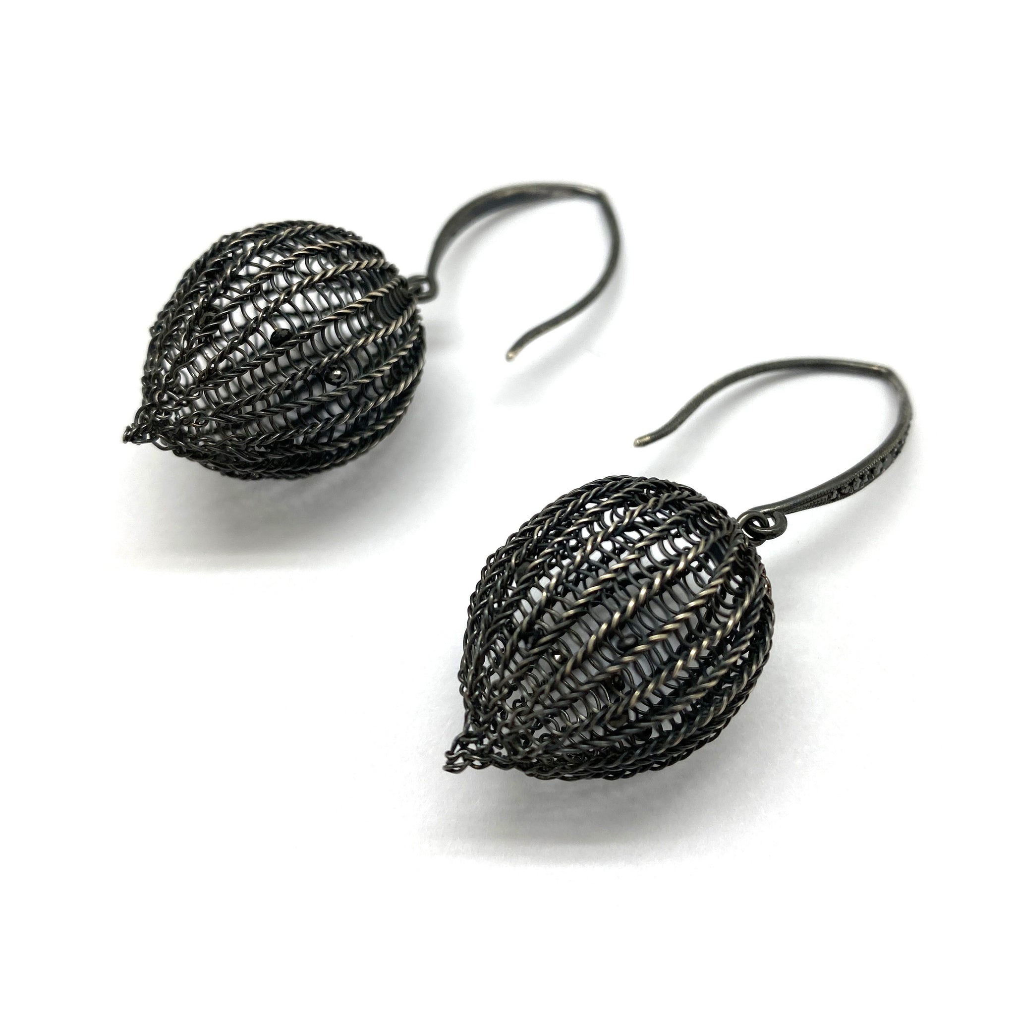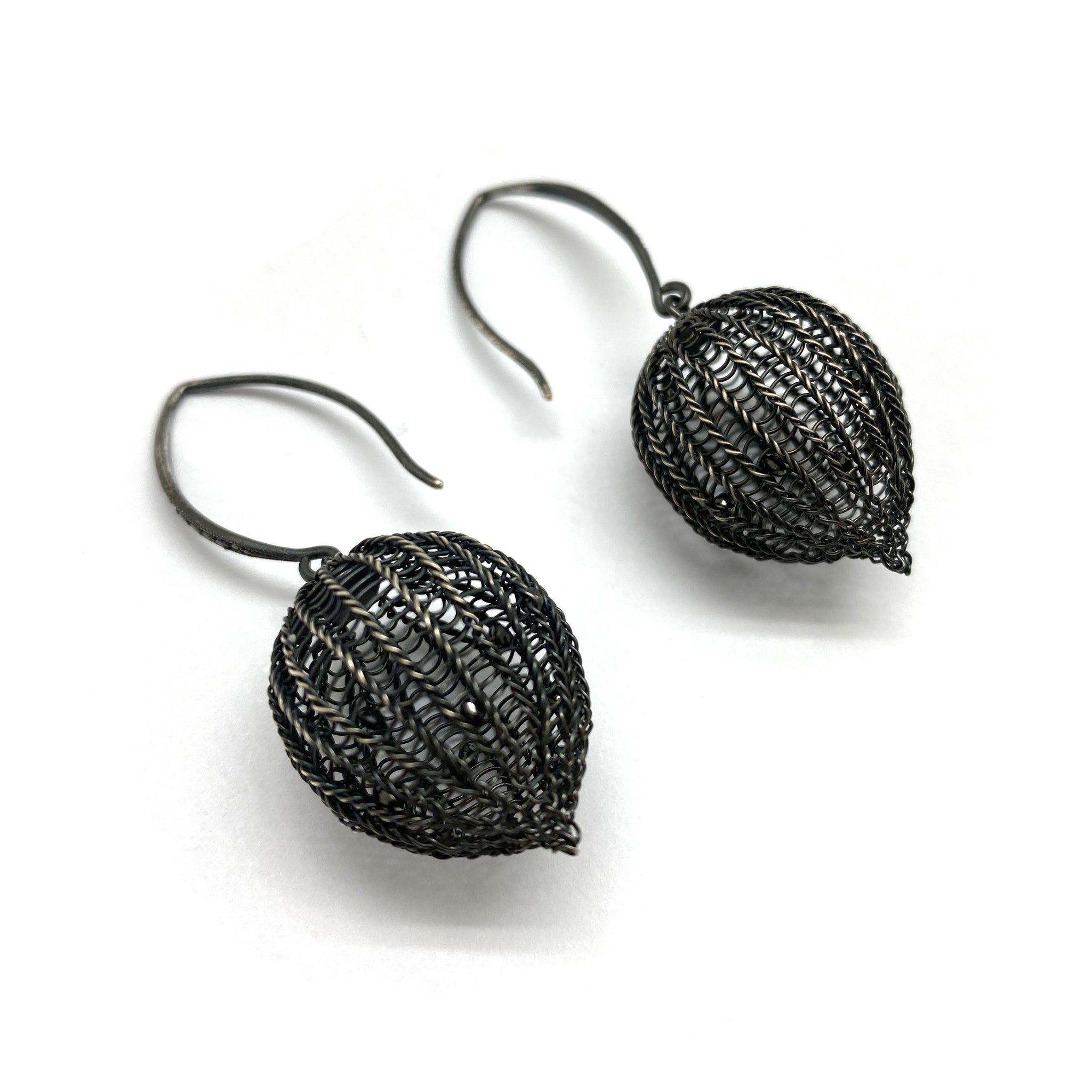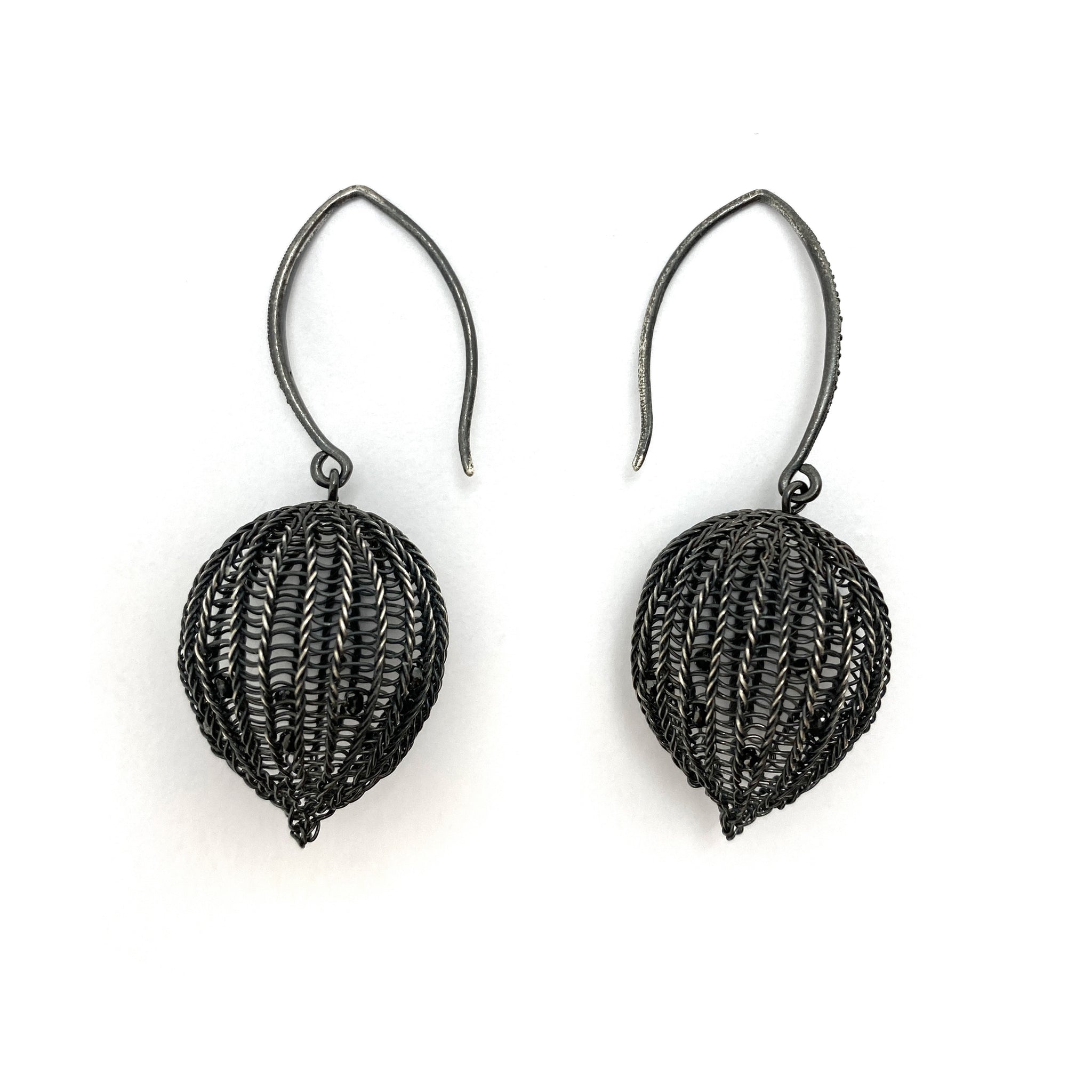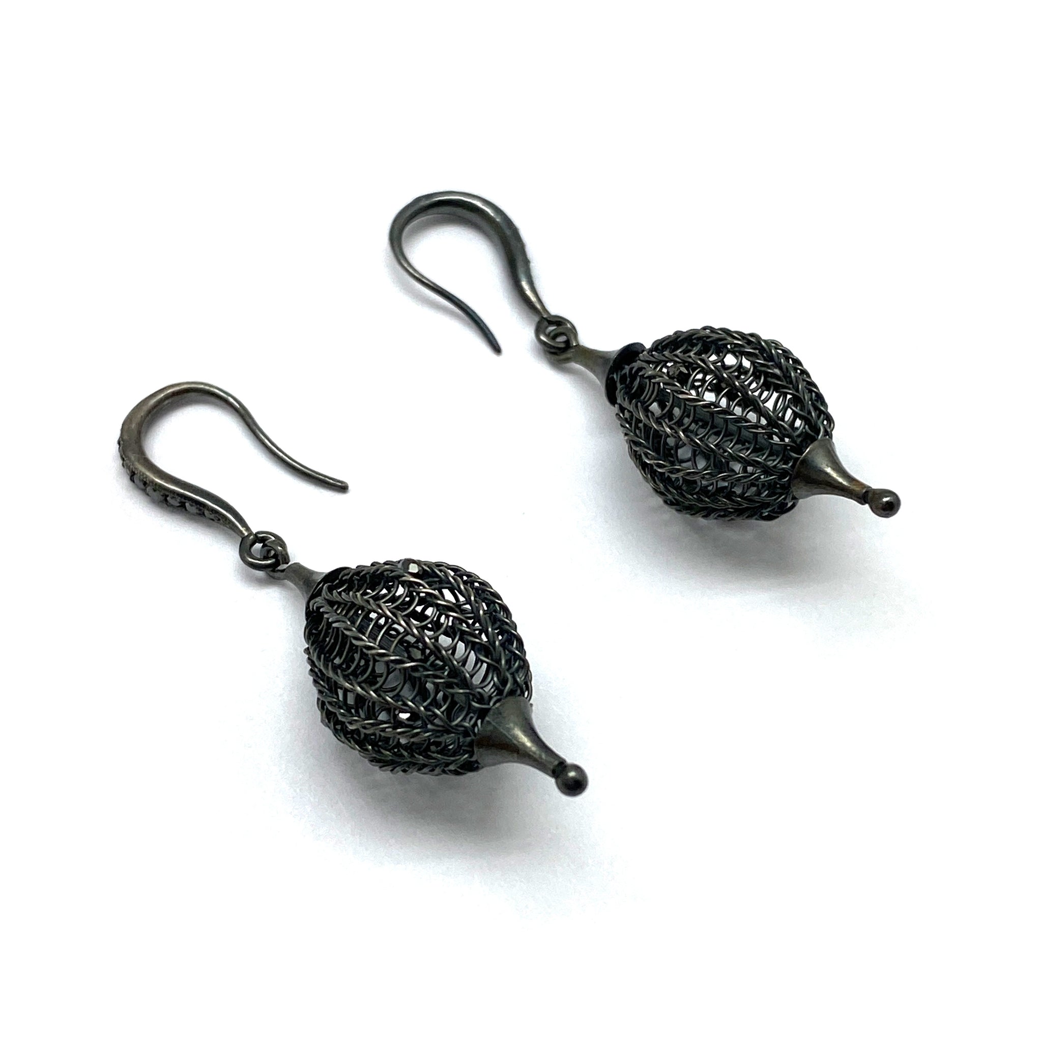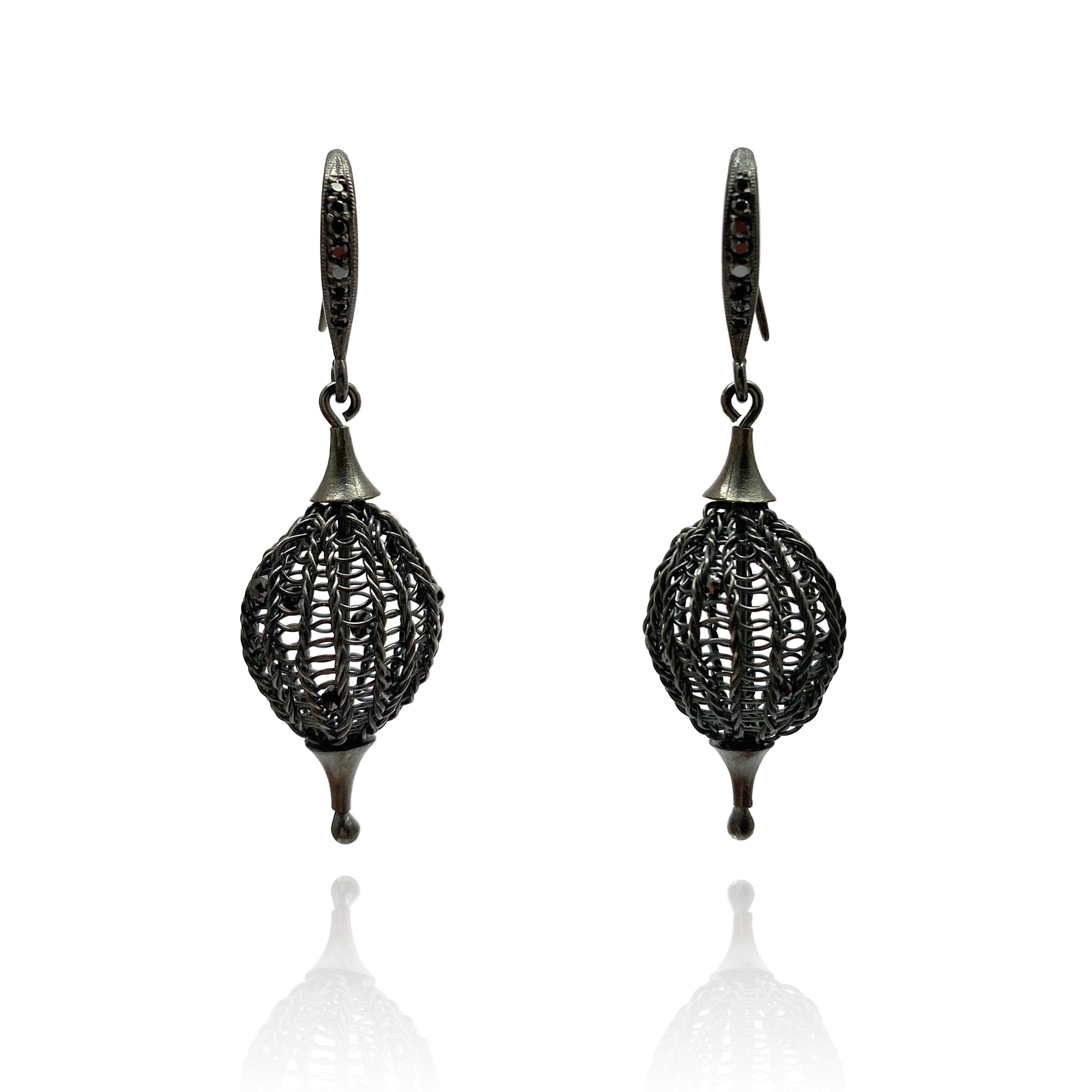 These shimmering black earrings by Sowon Joo catch the light from every angle. Black diamonds...