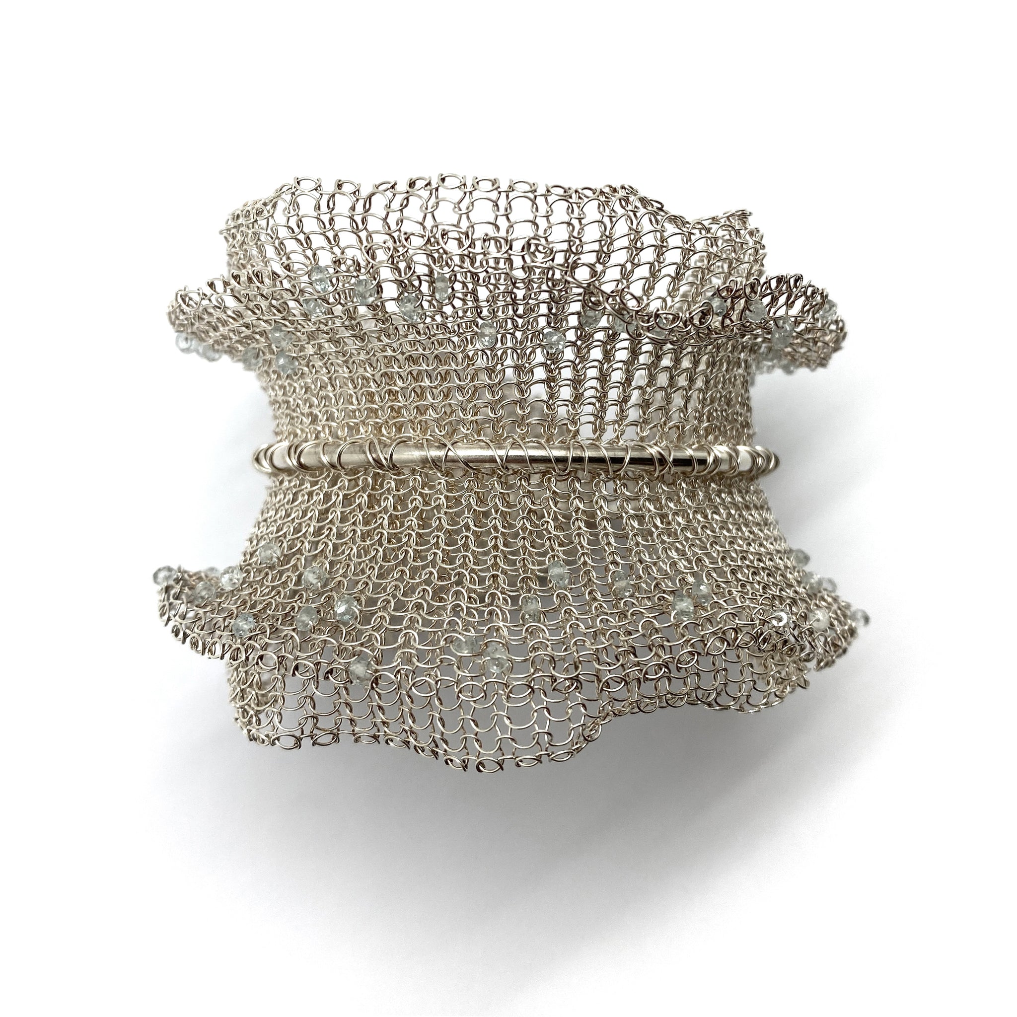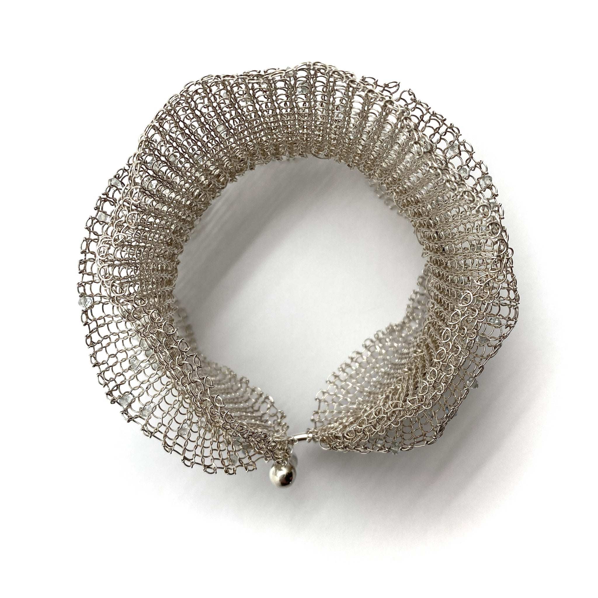 This one of a kind sculptural cuff is made with hand-crocheted sterling silver is adorned...