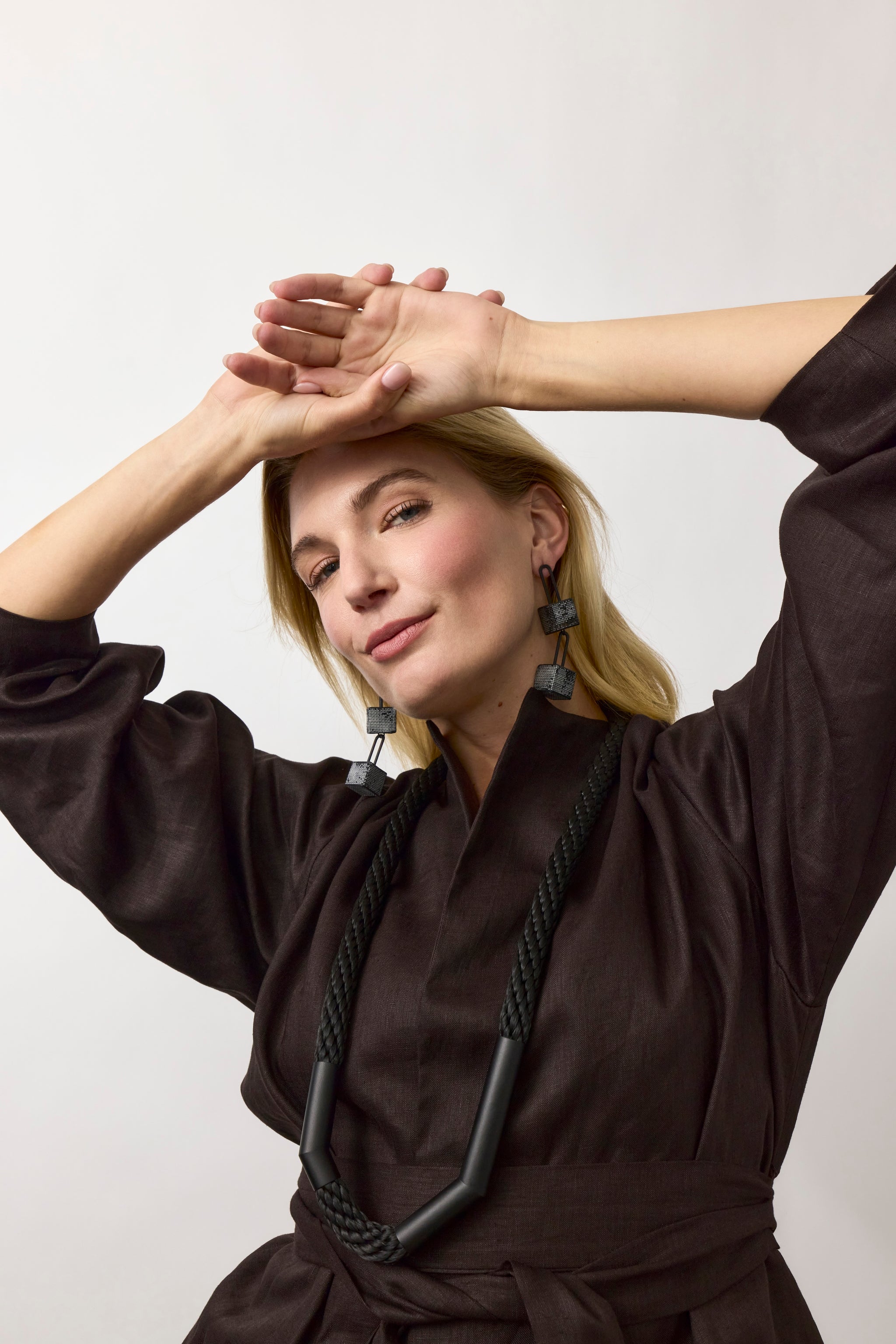French artist Joanne Grimonprez masterfully mixes material to create this dark, stand out necklace. Made...