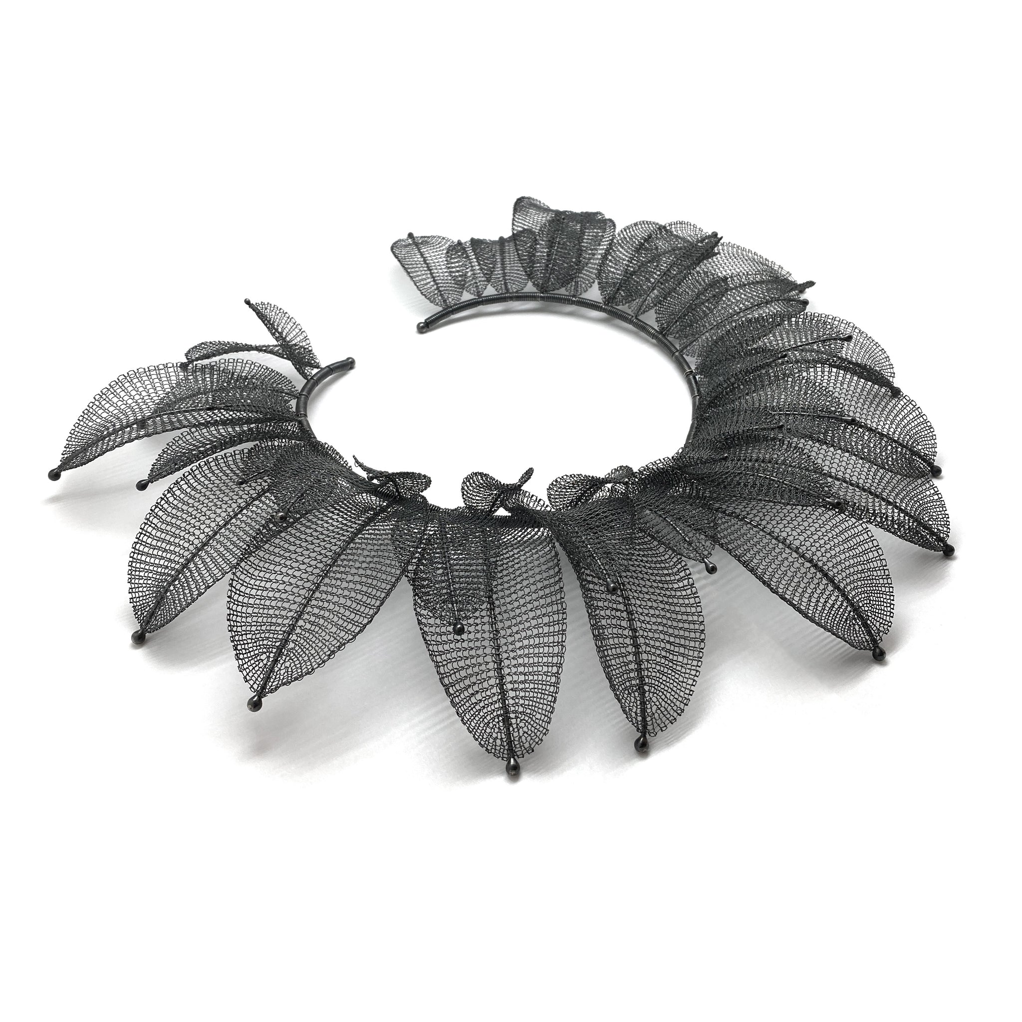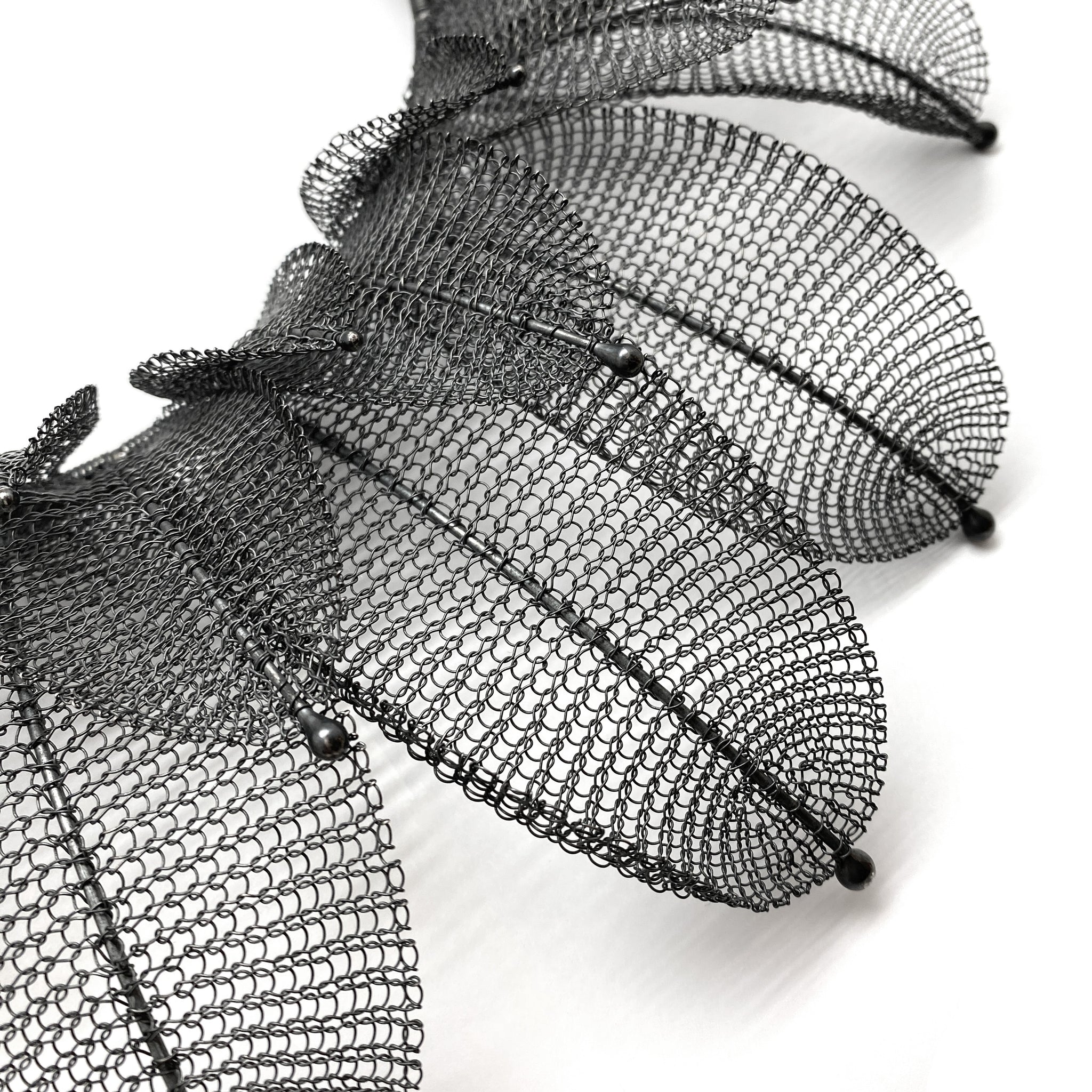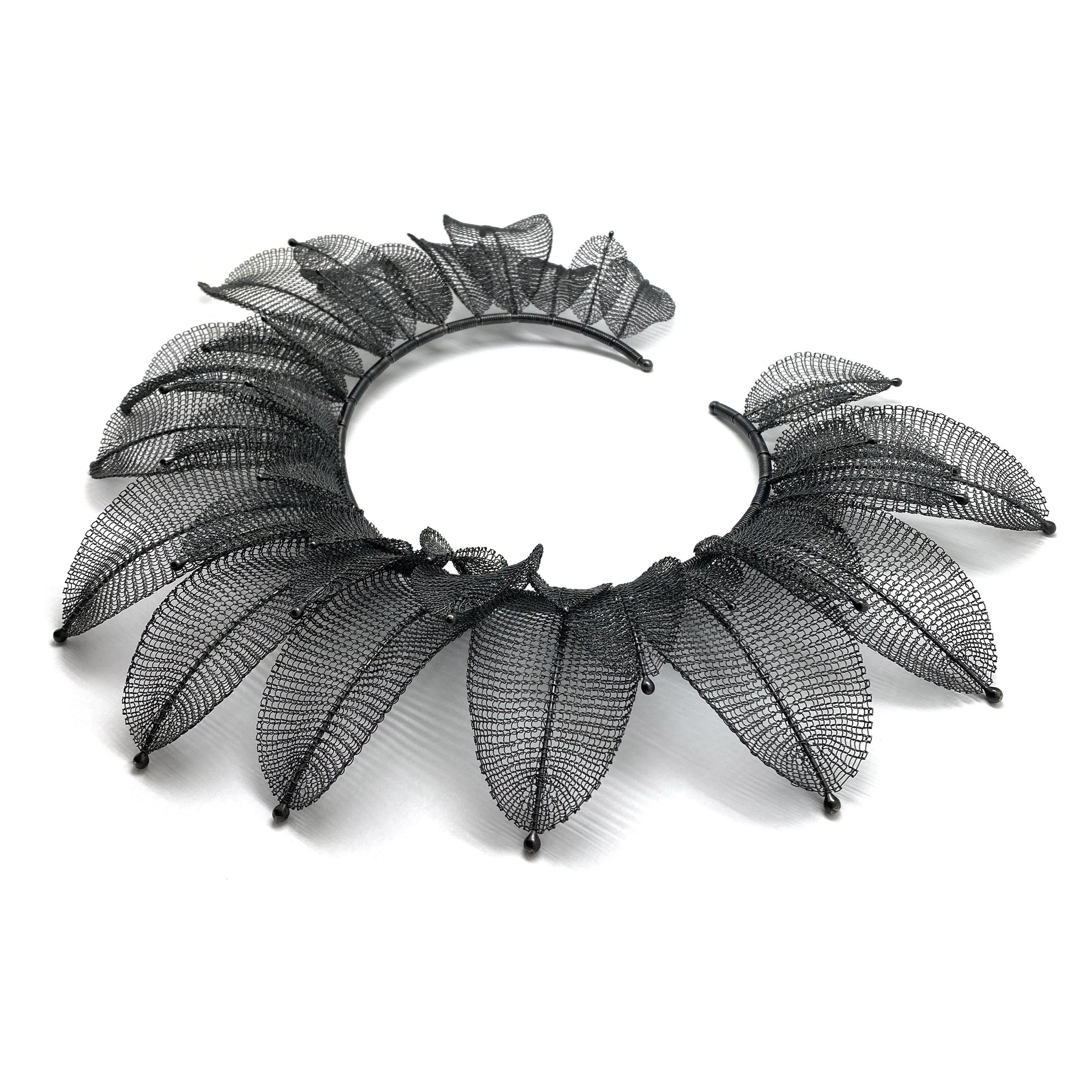 This one of a kind crochet necklace is reminiscent of a blooming flower. Made with layered leaves, this collar necklace is a bold yet wearable statement necklace.