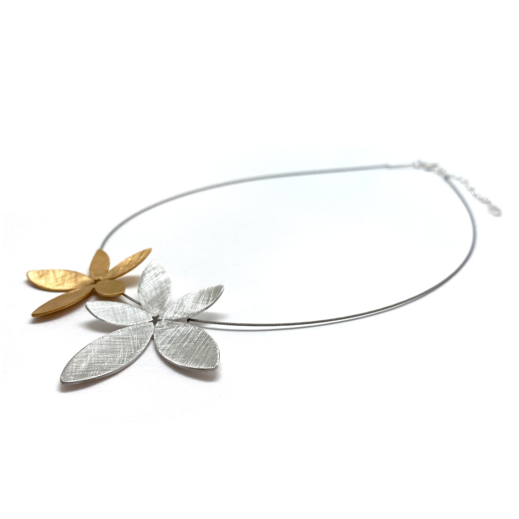 This necklace from Manuela Carl is flower power to the max! With a contemporary use of mixed metals and a stainless steel cable, this piece can be easily dressed up or down. Pair with Manuela's Gold Vermeil Flower Earrings to complete the look!