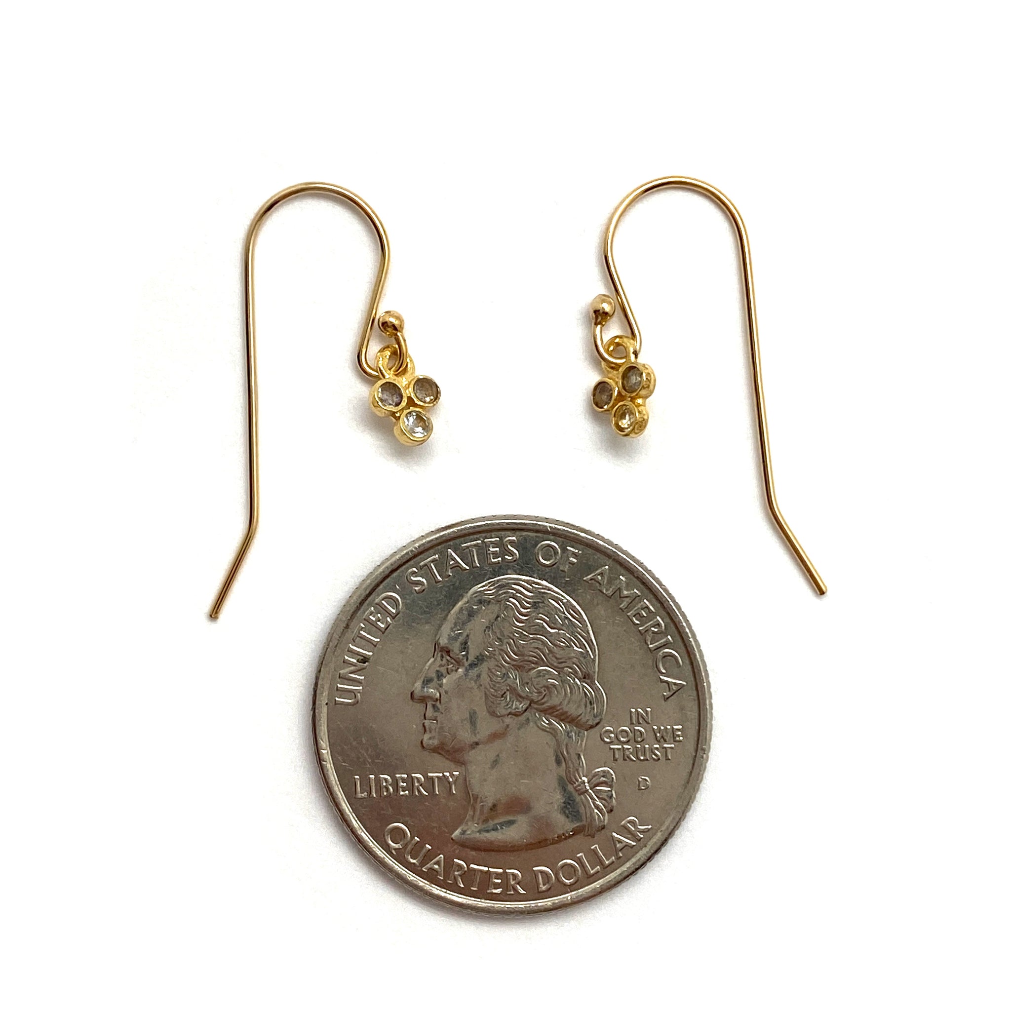 These petite gold vermeil earrings feature both labradorite and blue topaz to dress up every day.