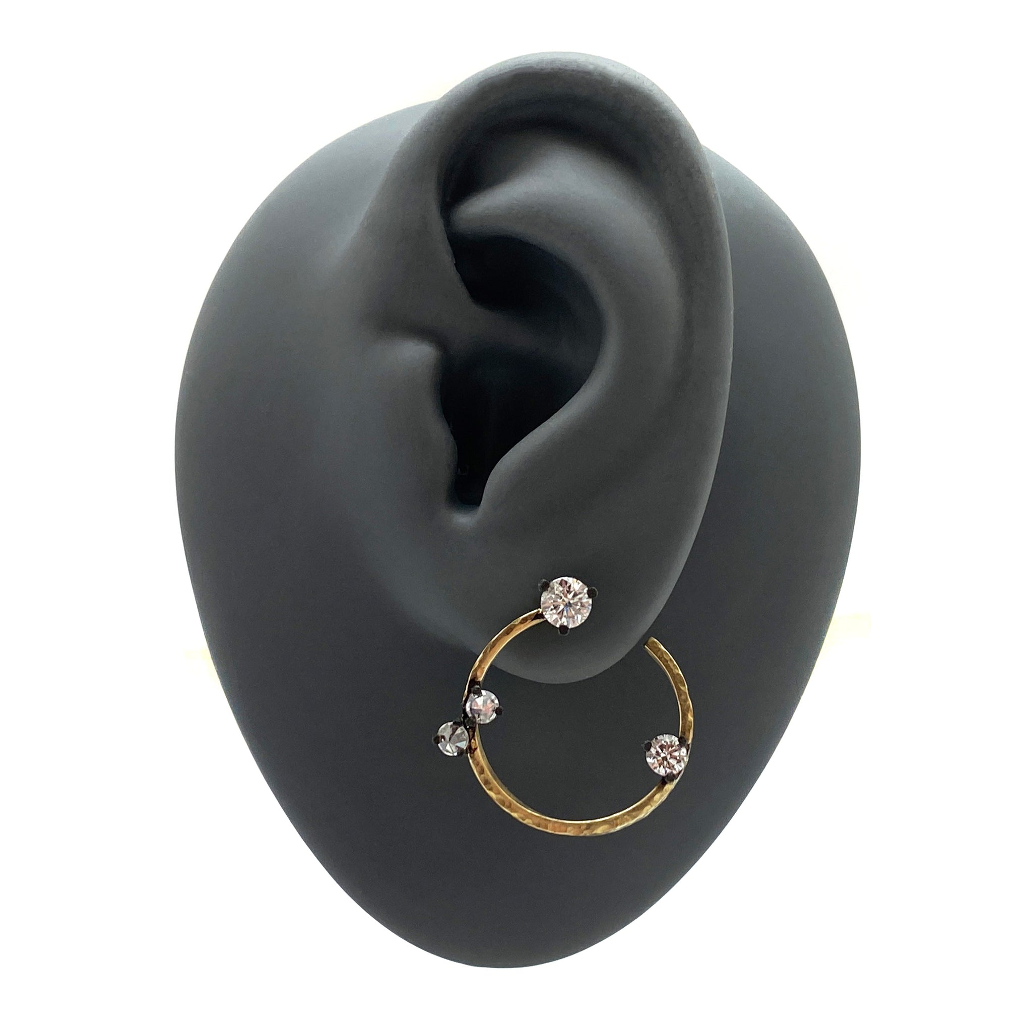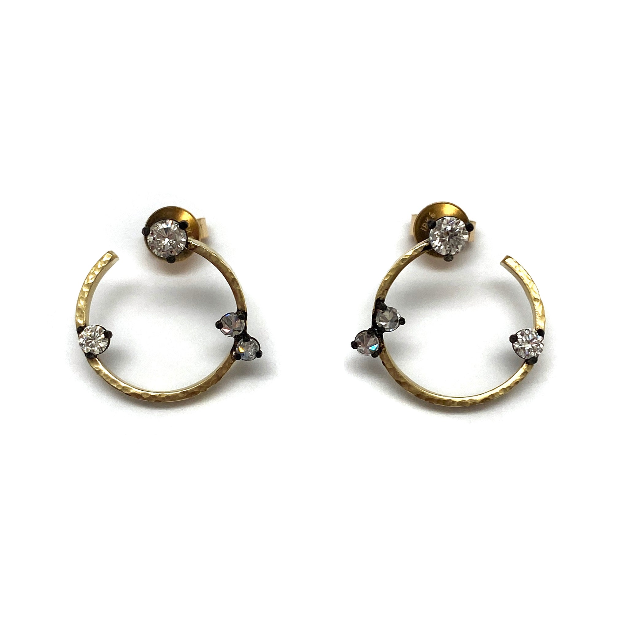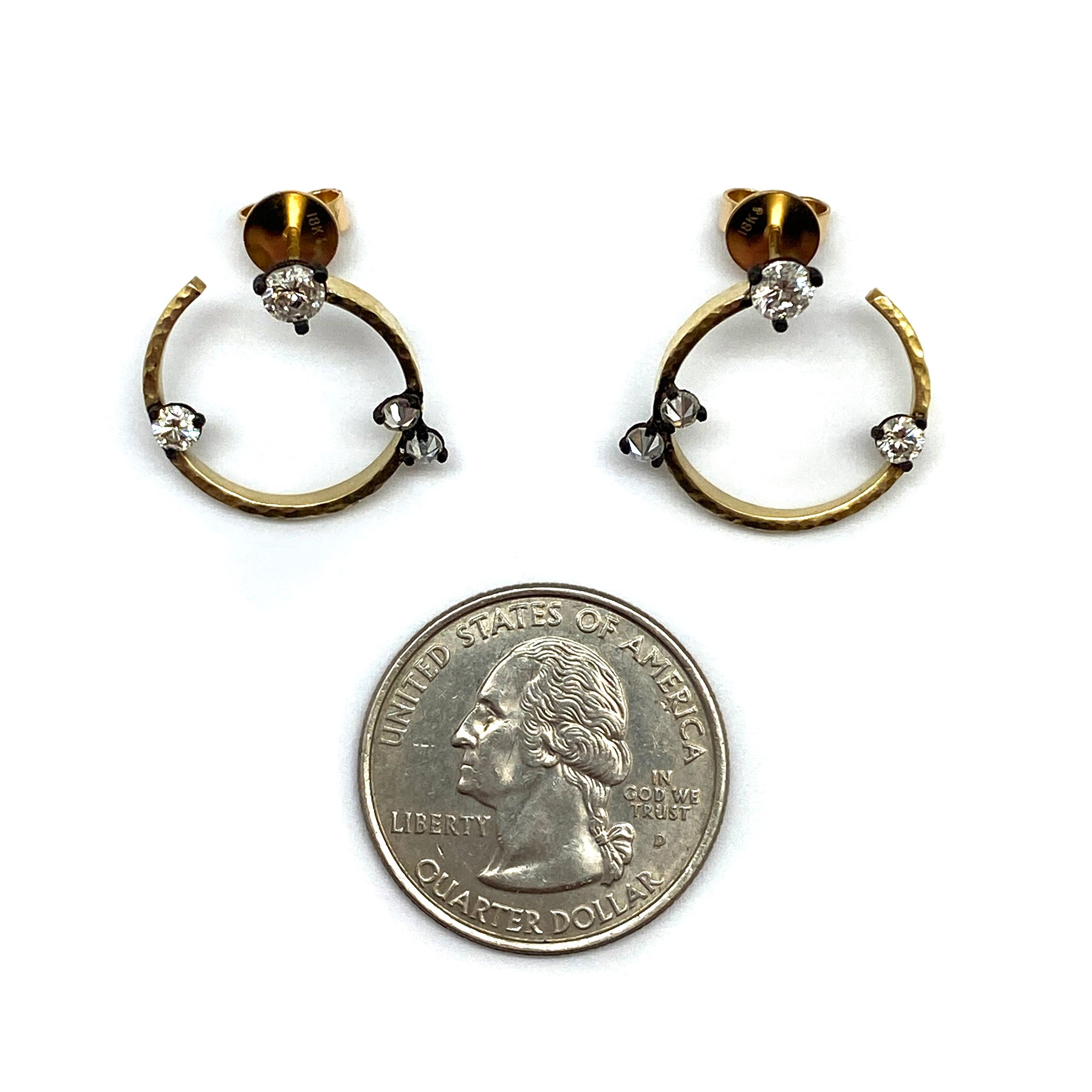 This unique pair by Todd Pownell will mix up your every day gold hoop. Featuring his signature inverted diamonds, these earrings have an opening the allows the hoop to slightly sit behind the earlobe for an interesting illusion.