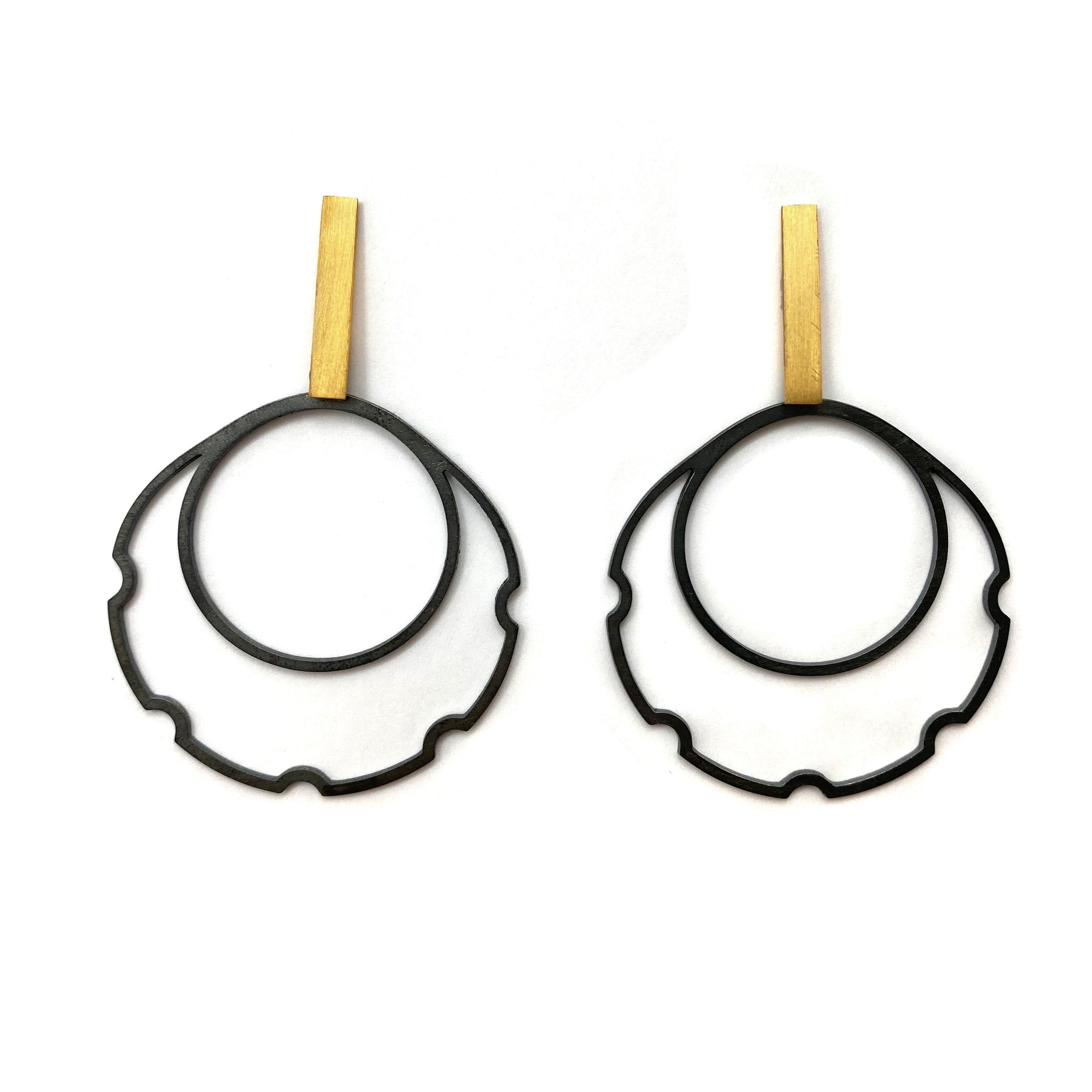 Suspended from gold vermeil posts, these ridged earrings utilize negative space to create a lightweight statement earrings. This pair are great to travel with as the classic gold and black will complete any outfit.