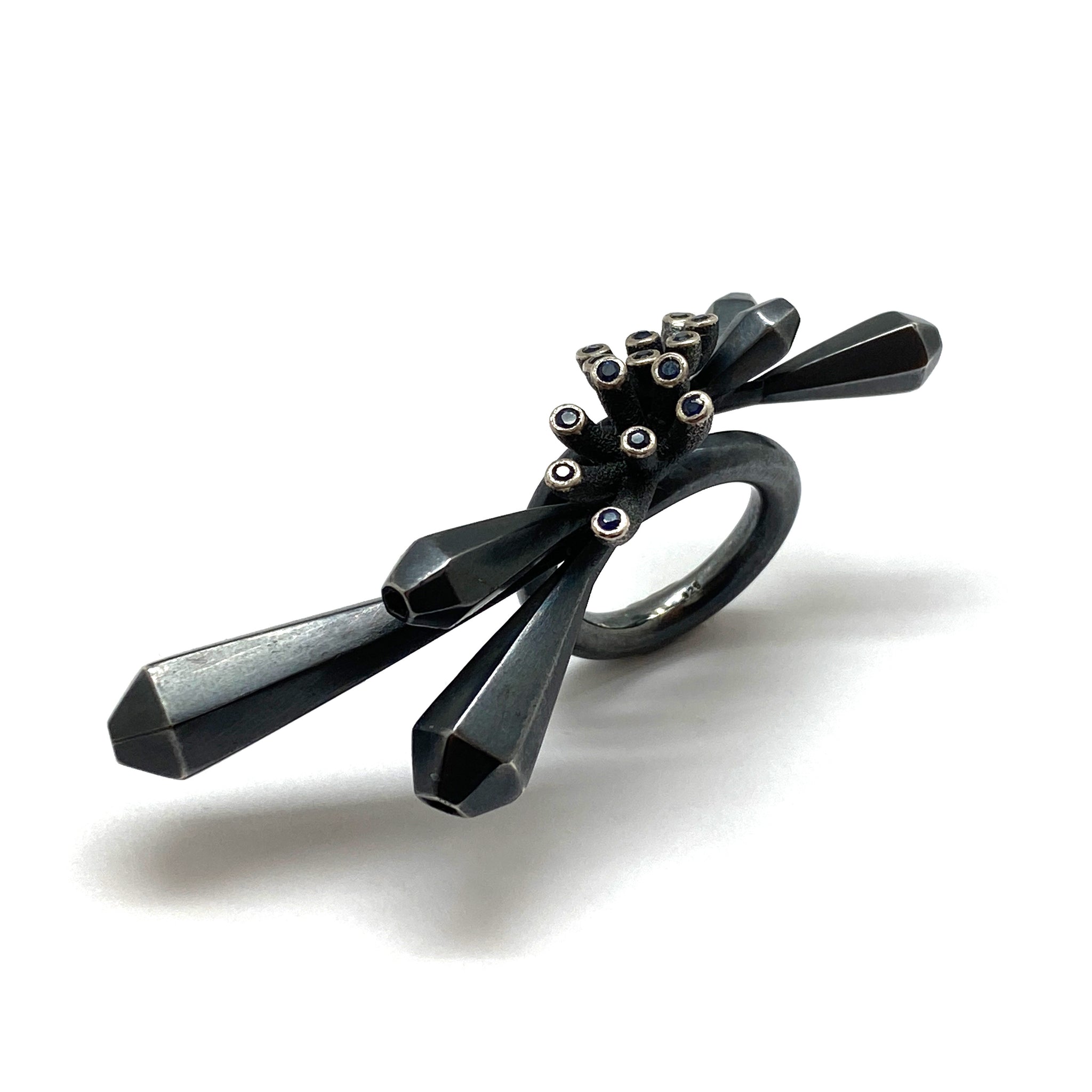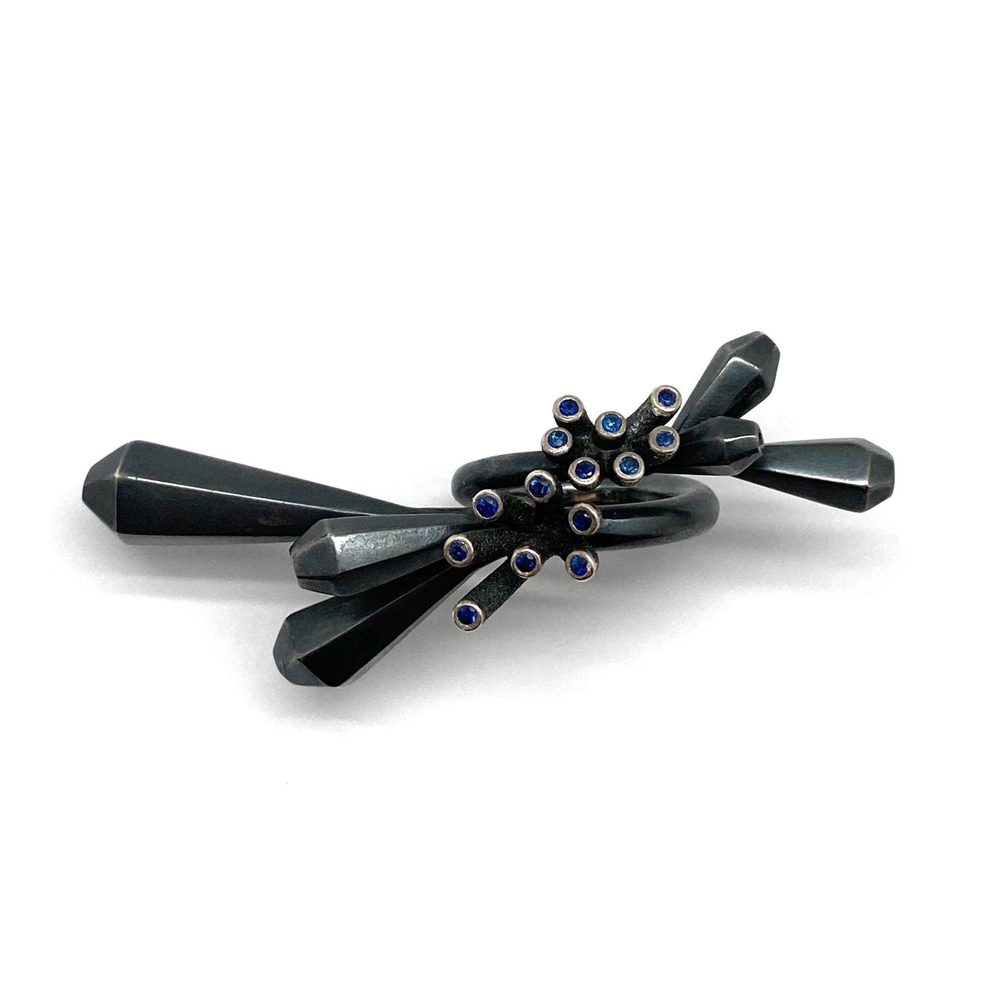 Materials: Oxidized Sterling Silver, Sapphire