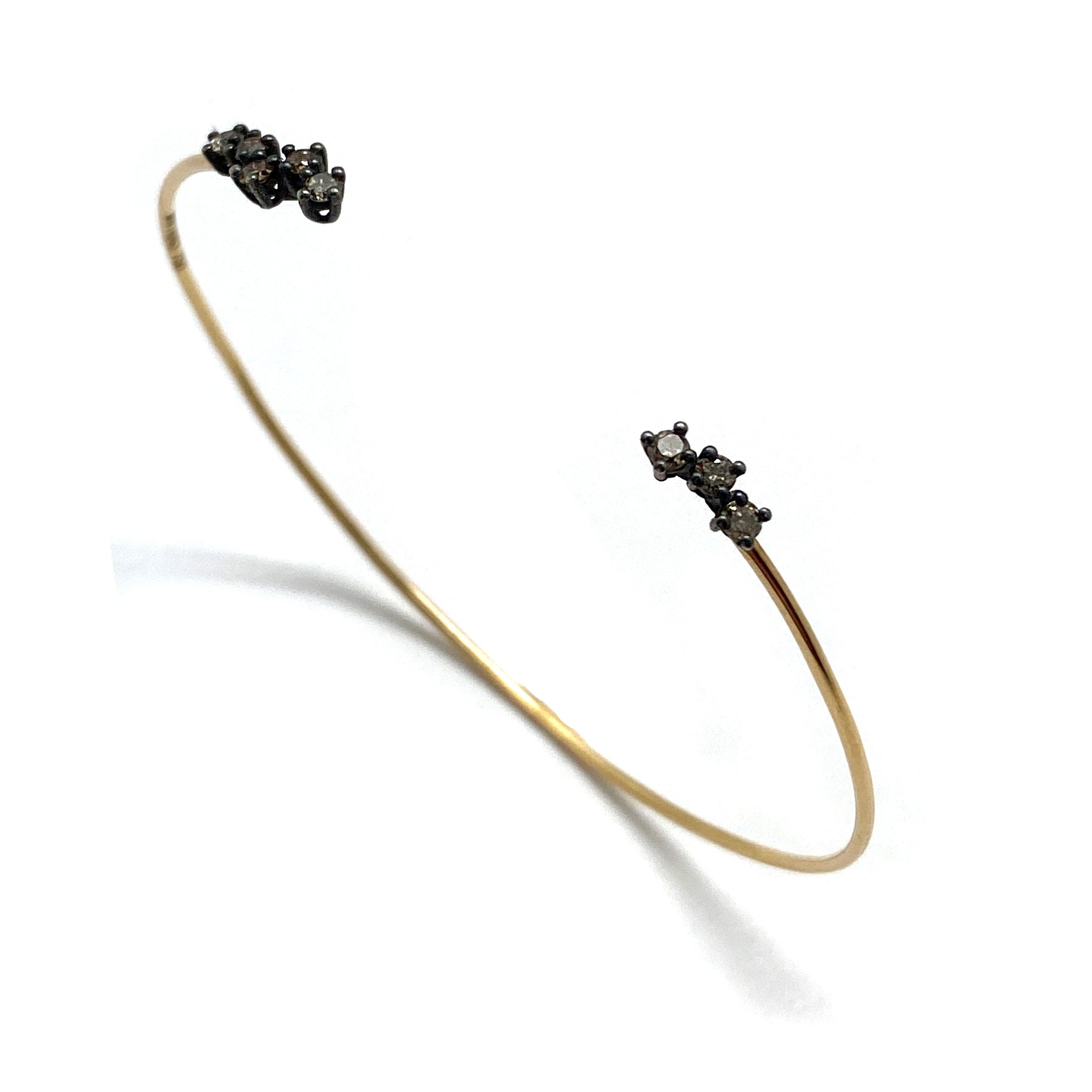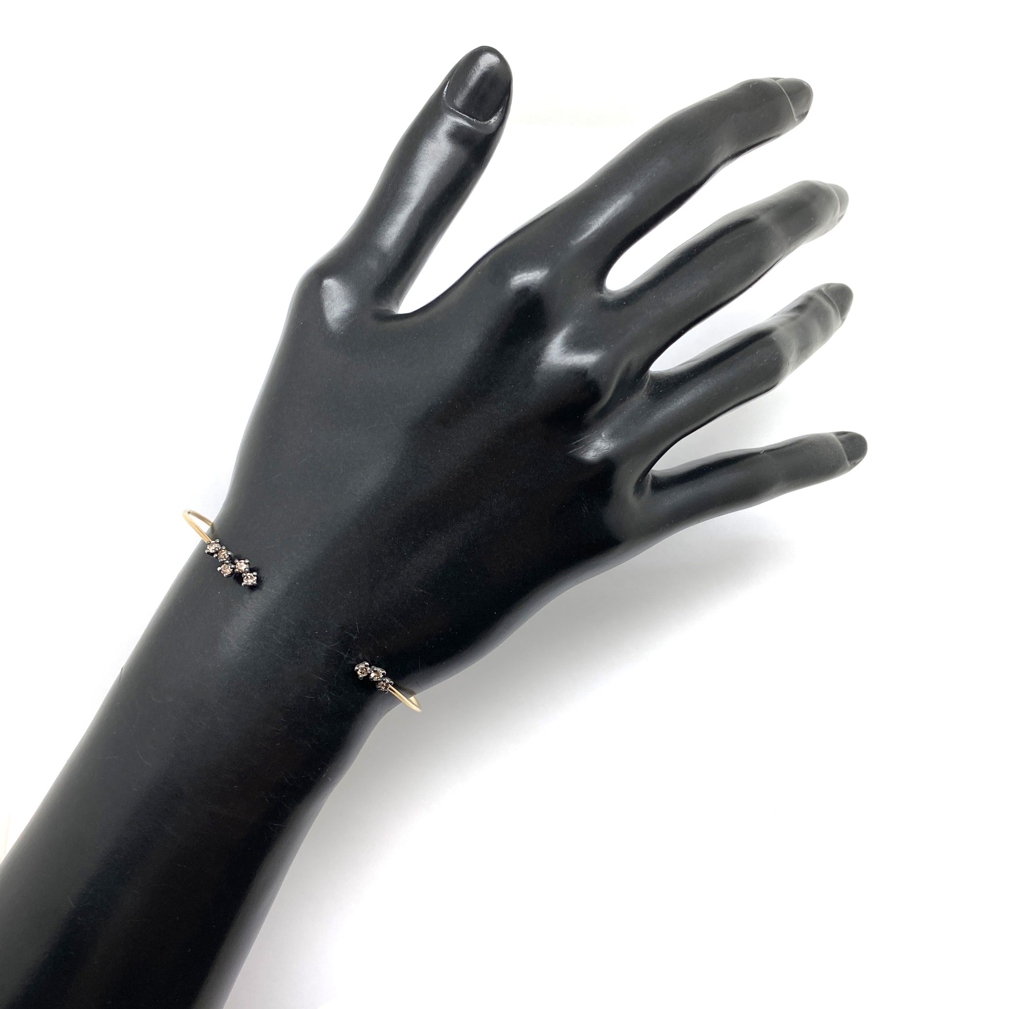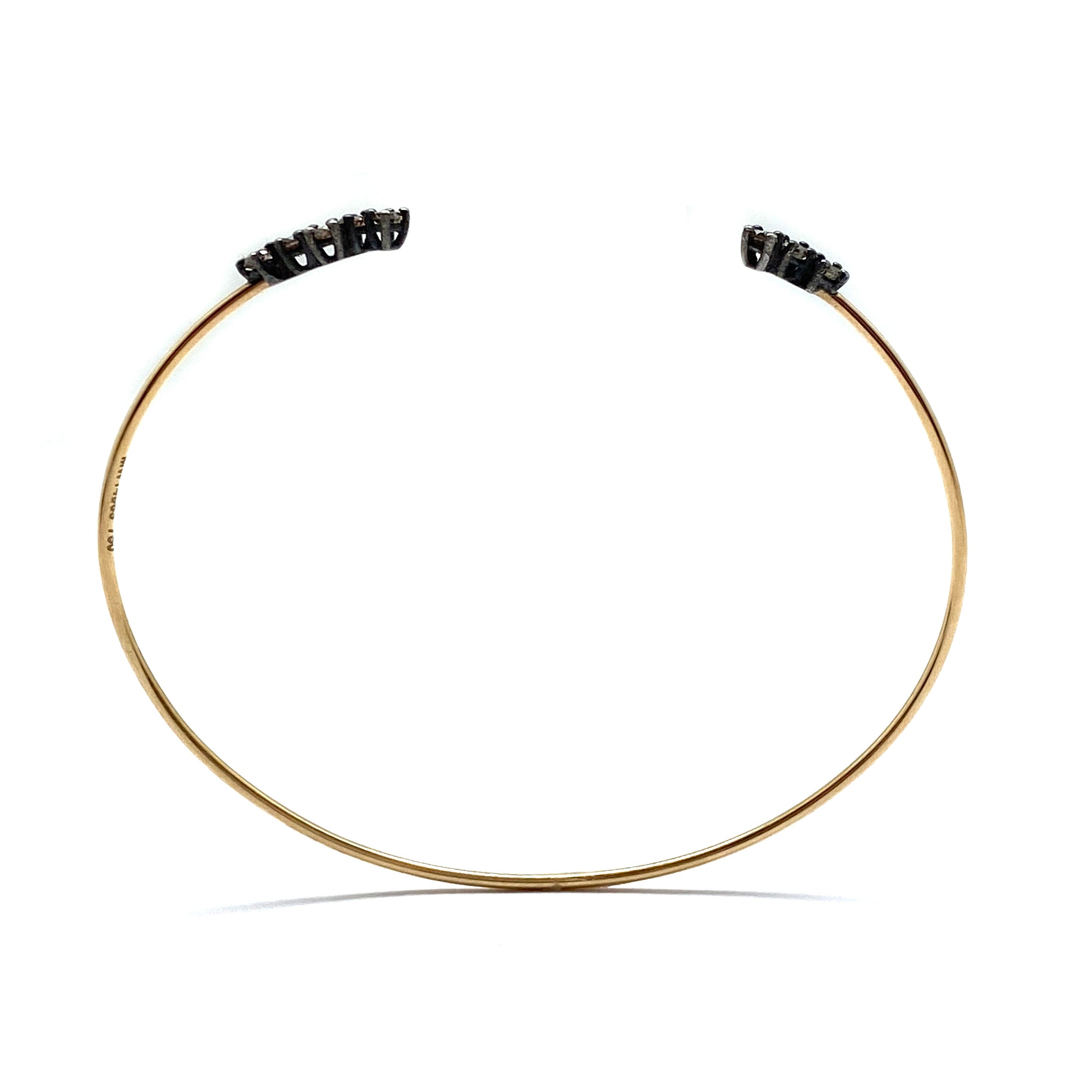Add a touch of edge to your bracelet stack with this open faced, asymmetrical gold and diamond bracelet by Manuk Durmazguler. This cuff features a flexible 1" opening allowing it to fit on a variety of wrist sizes.