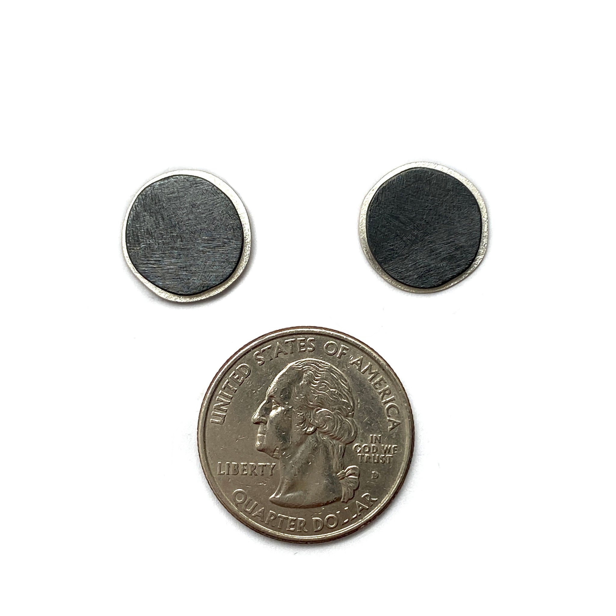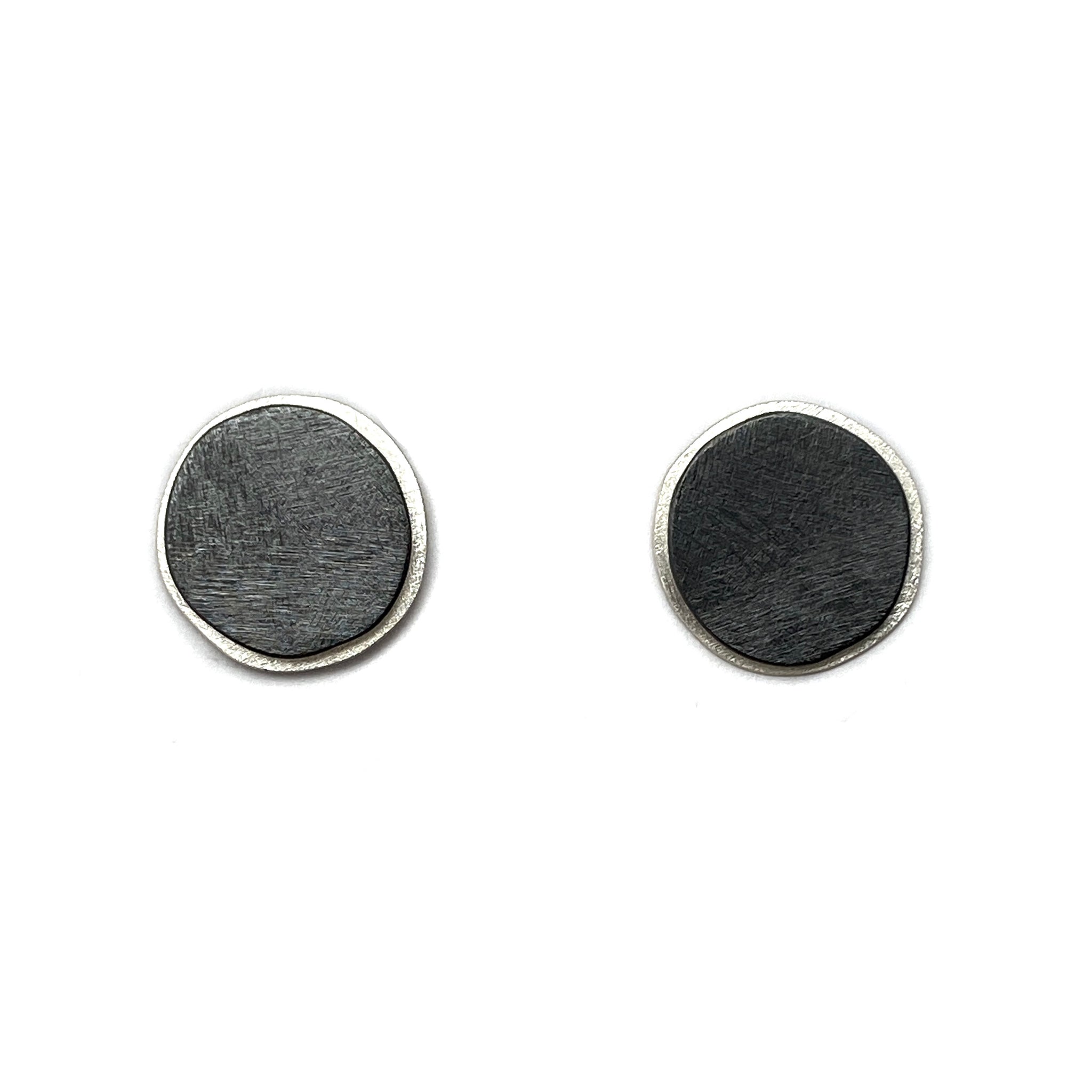 These studs are a great staple. A ring of bright sterling silver shines from under the dark, oxidized sterling silver circle to create a dimensional, easy to wear earring. Pair with the matching Silver and Black Circle Necklace to complete the look.