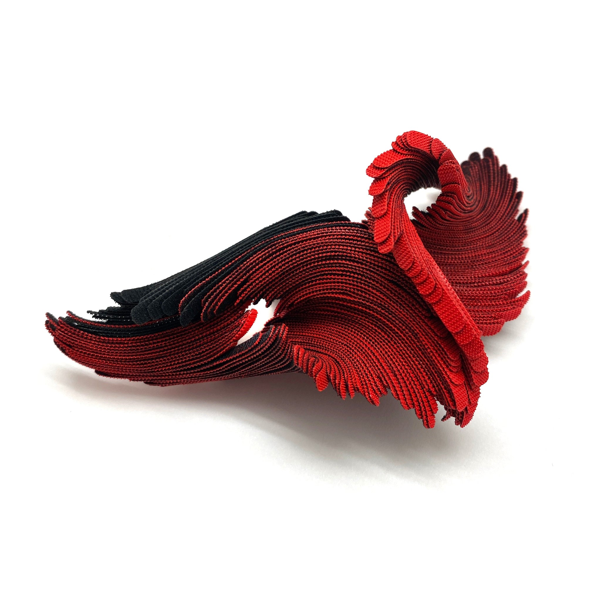 Mimicking the wings of a bird, this sculptural brooch by Yong Joo Kim is created entirely from hand-cut Velcro.