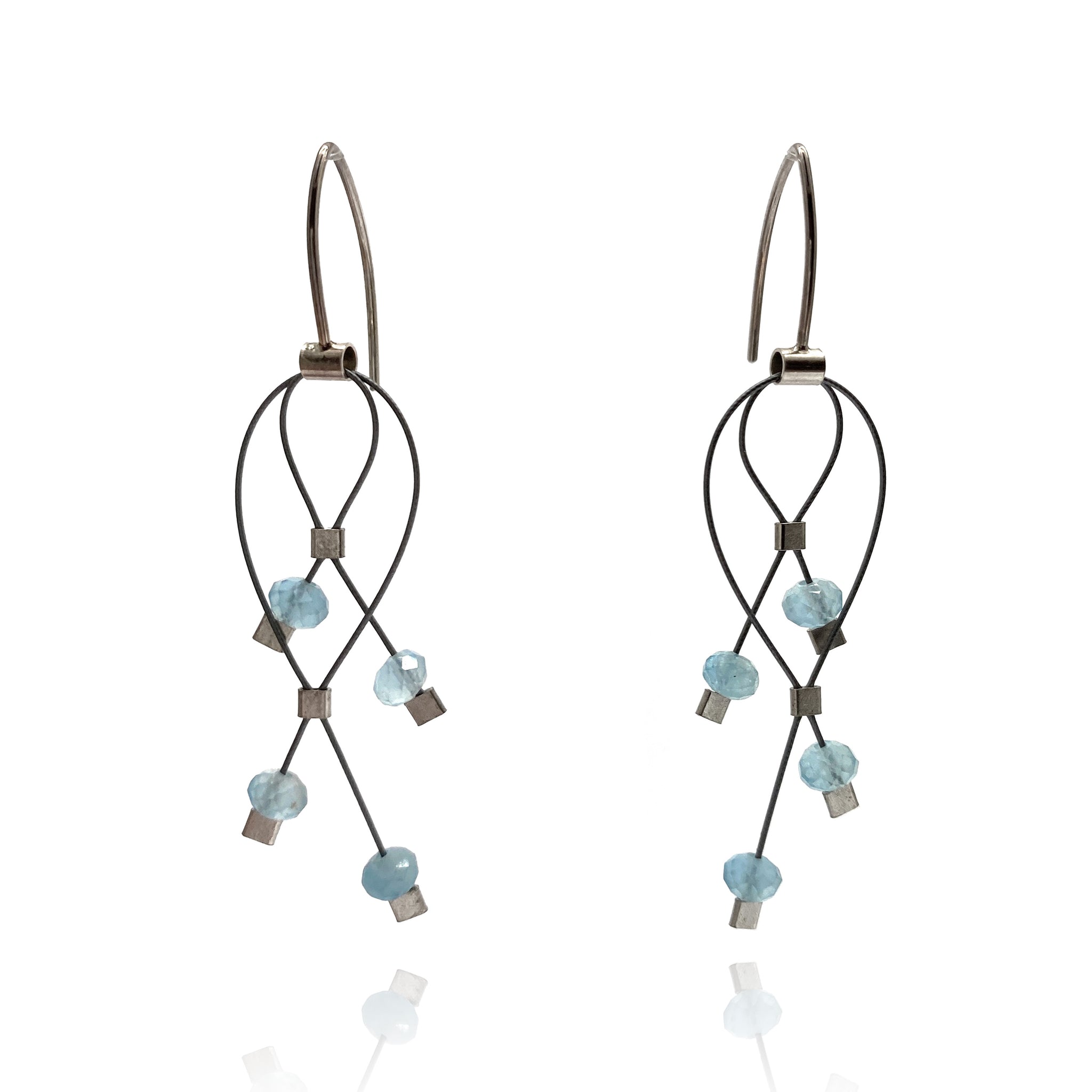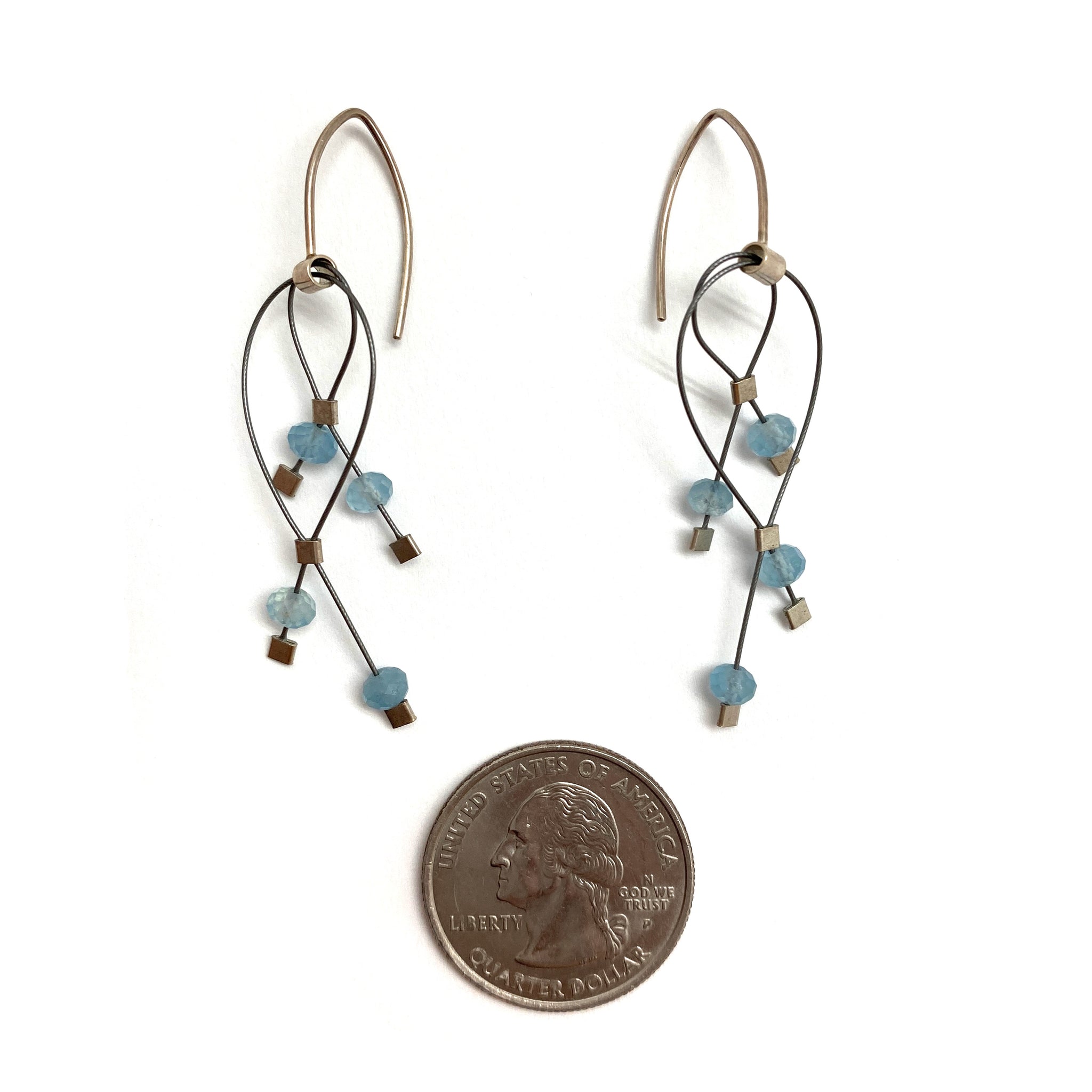 This aquamarine pair by Meghan Riley are a subtle statement. Made with dark nylon coated stainless steel, these earrings are extremely lightweight.