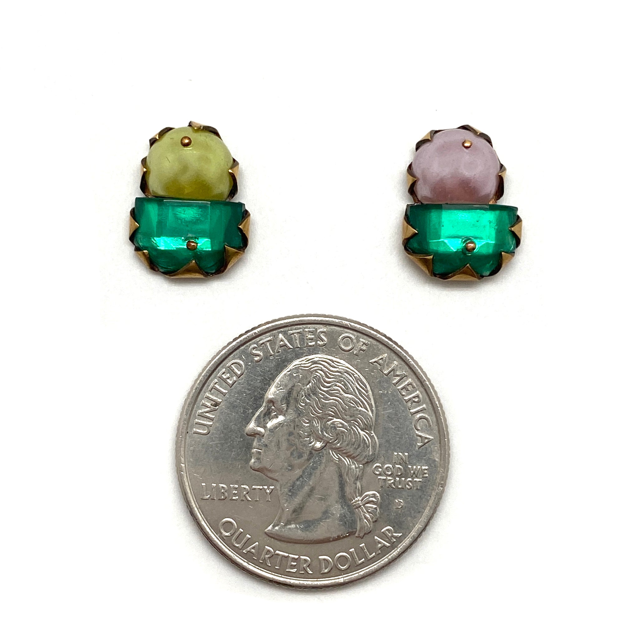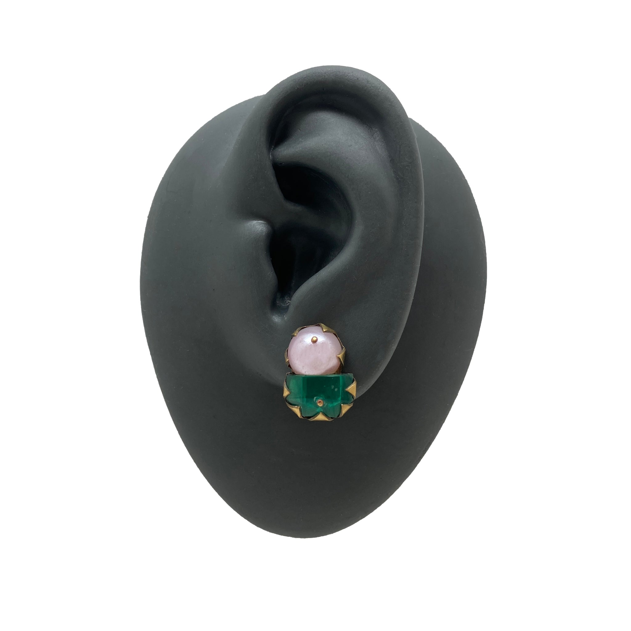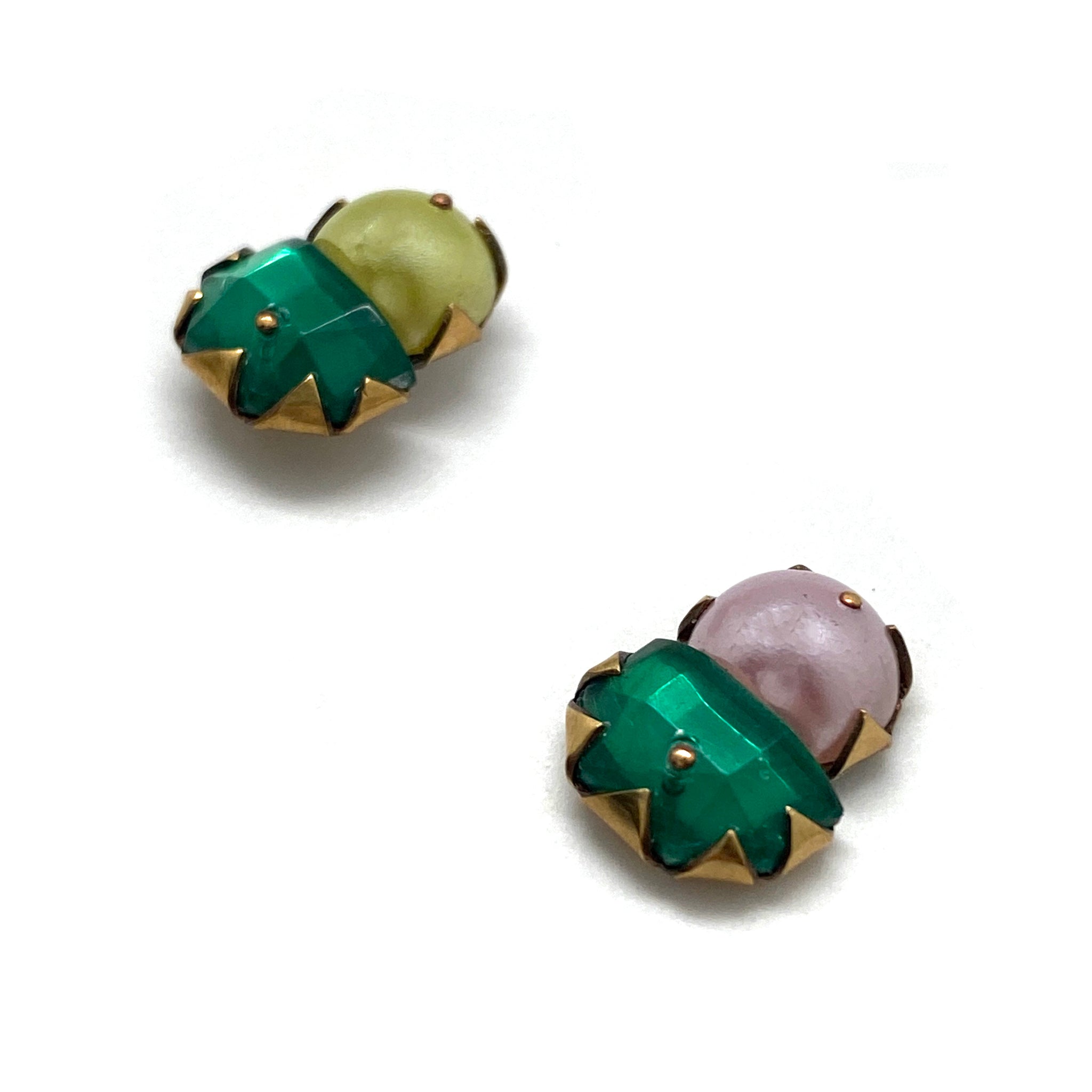 Who doesn't love a great pair of asymmetrical studs?! With an emerald acrylic that remarkably catches the light, these earrings are a fun, flashy take on everyday wear.