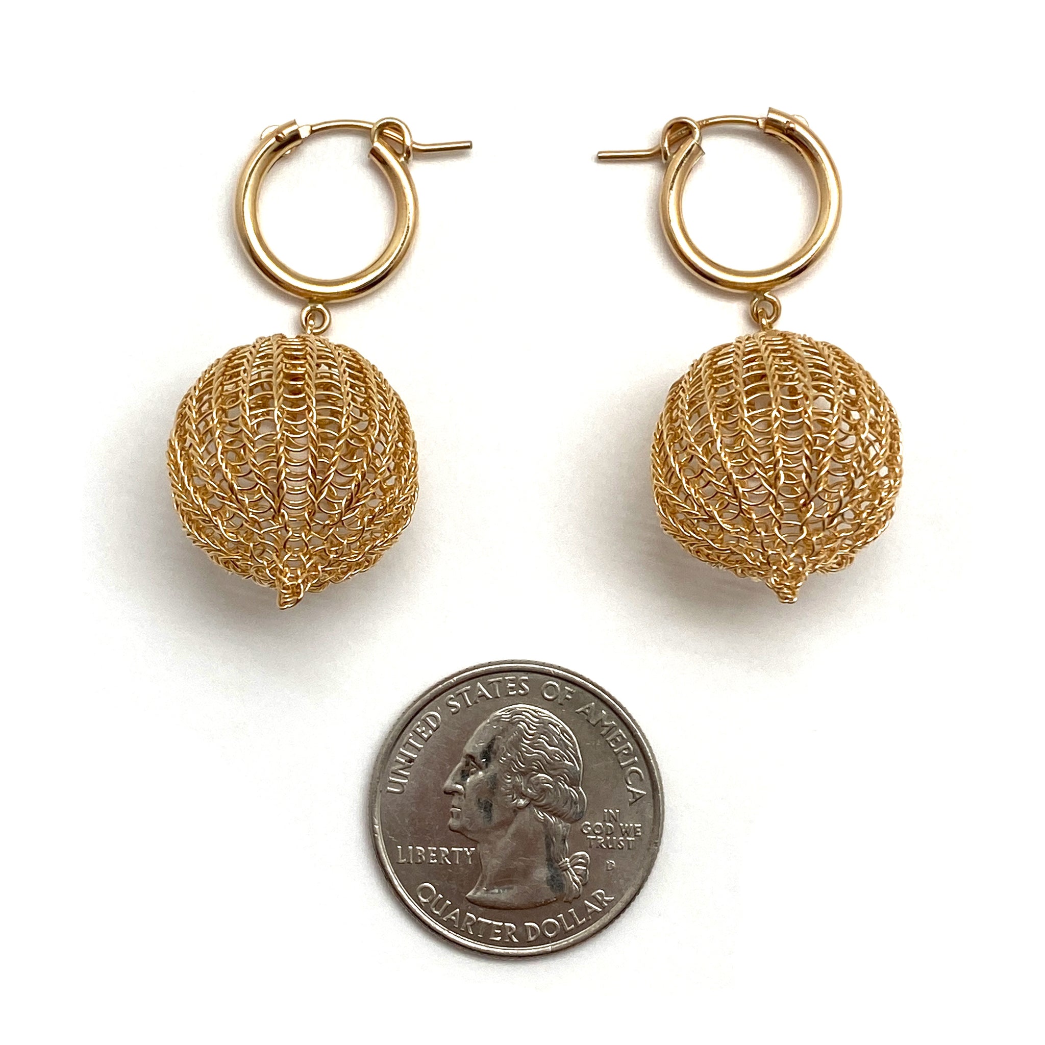 Let this gold fill pair by Sowon Joo dress up your every day. Made with hand crocheted gold fill and suspended from huggie hoops, this pair are an effortless addition to any outfit.