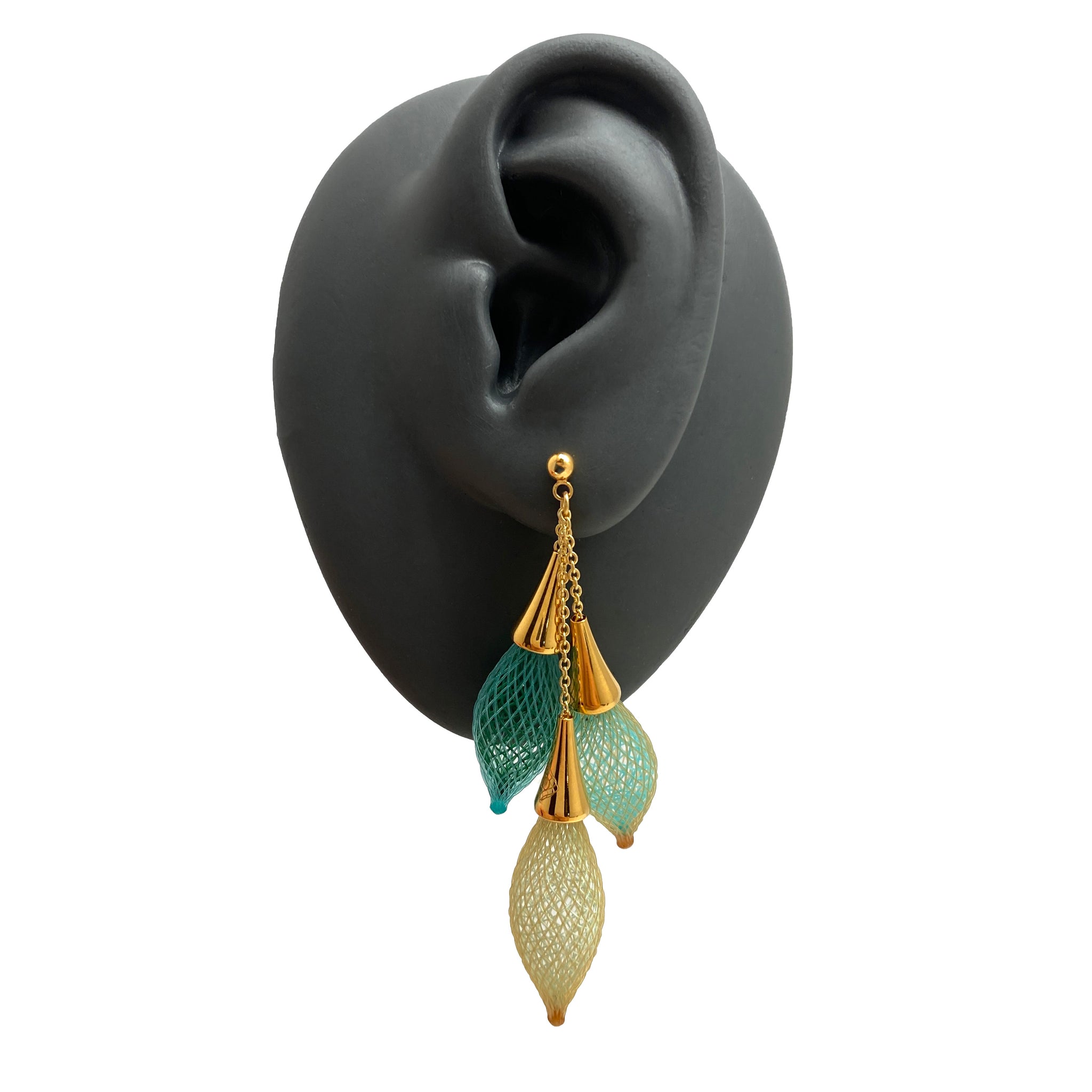 This multi-chrome pair from Dorine Decayeux feature a cascade of ombre greens. Pair them with Dorine's Green Ombre Necklace to complete the set!