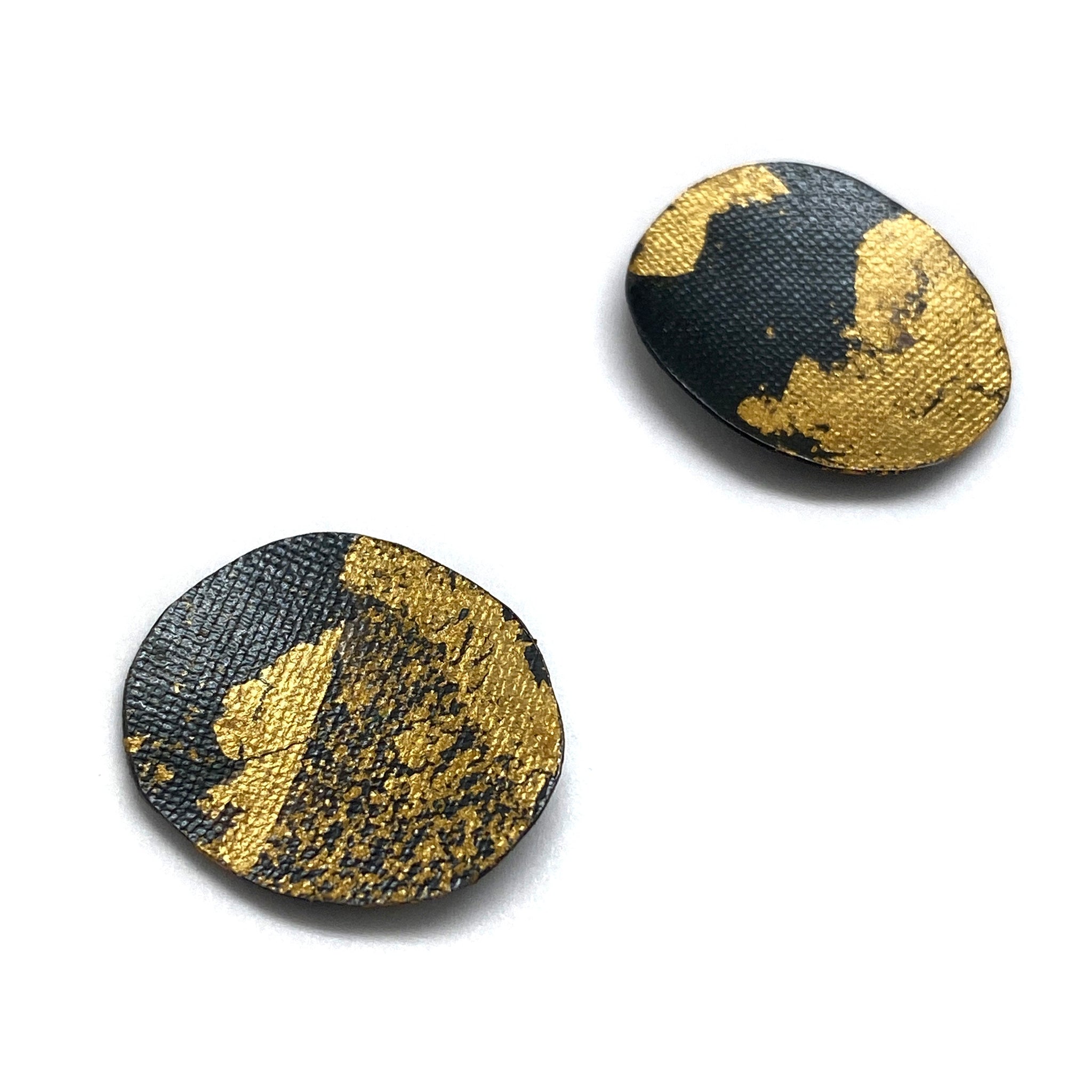 Made with dark oxidized sterling silver and 23k gold leaf, these studs are your next staple. The abstract application of 23k gold leaf highlights the one of kind nature.