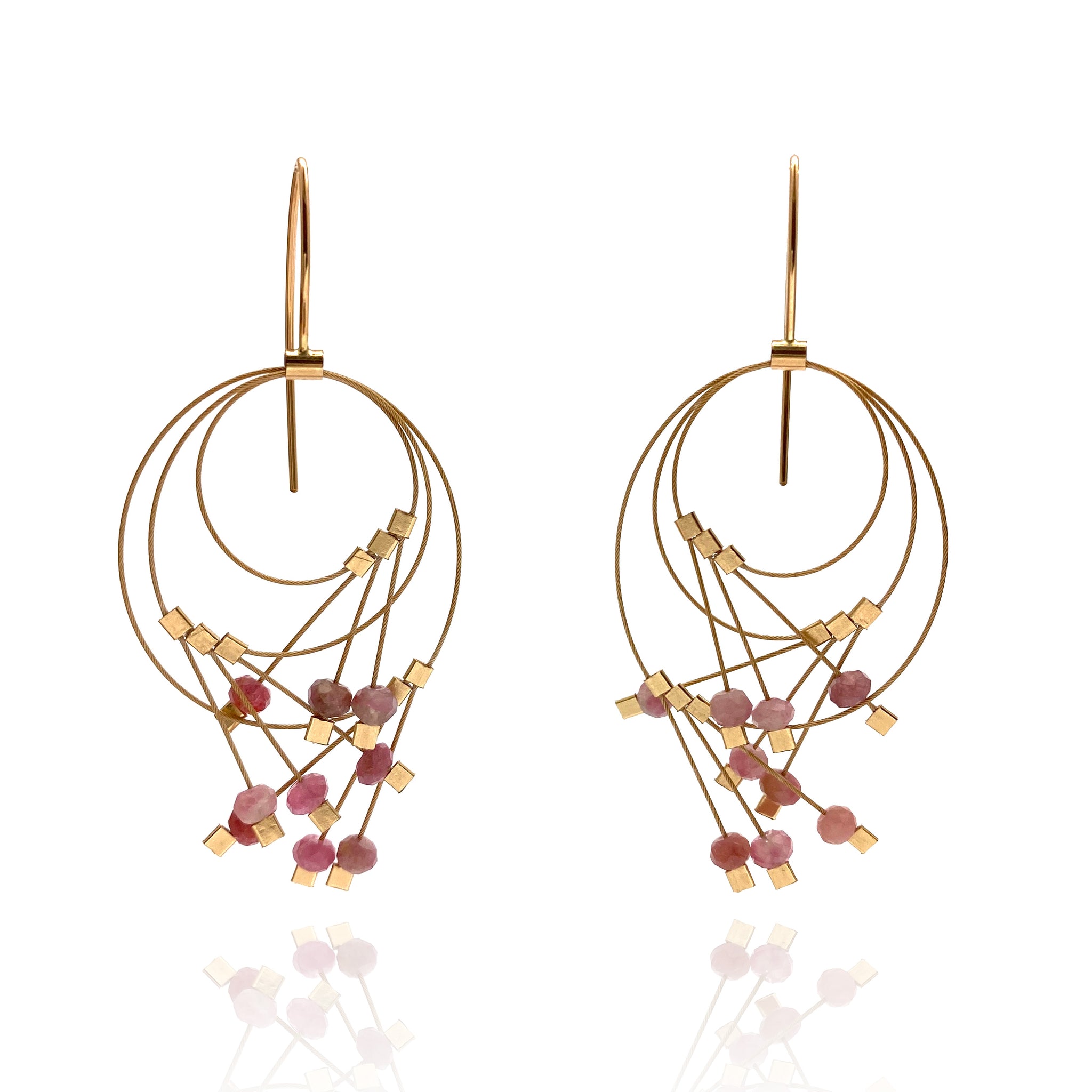 Materials: Pink Tourmaline, Nylon Coated Stainless Steel, 14k Gold Fill Hooks