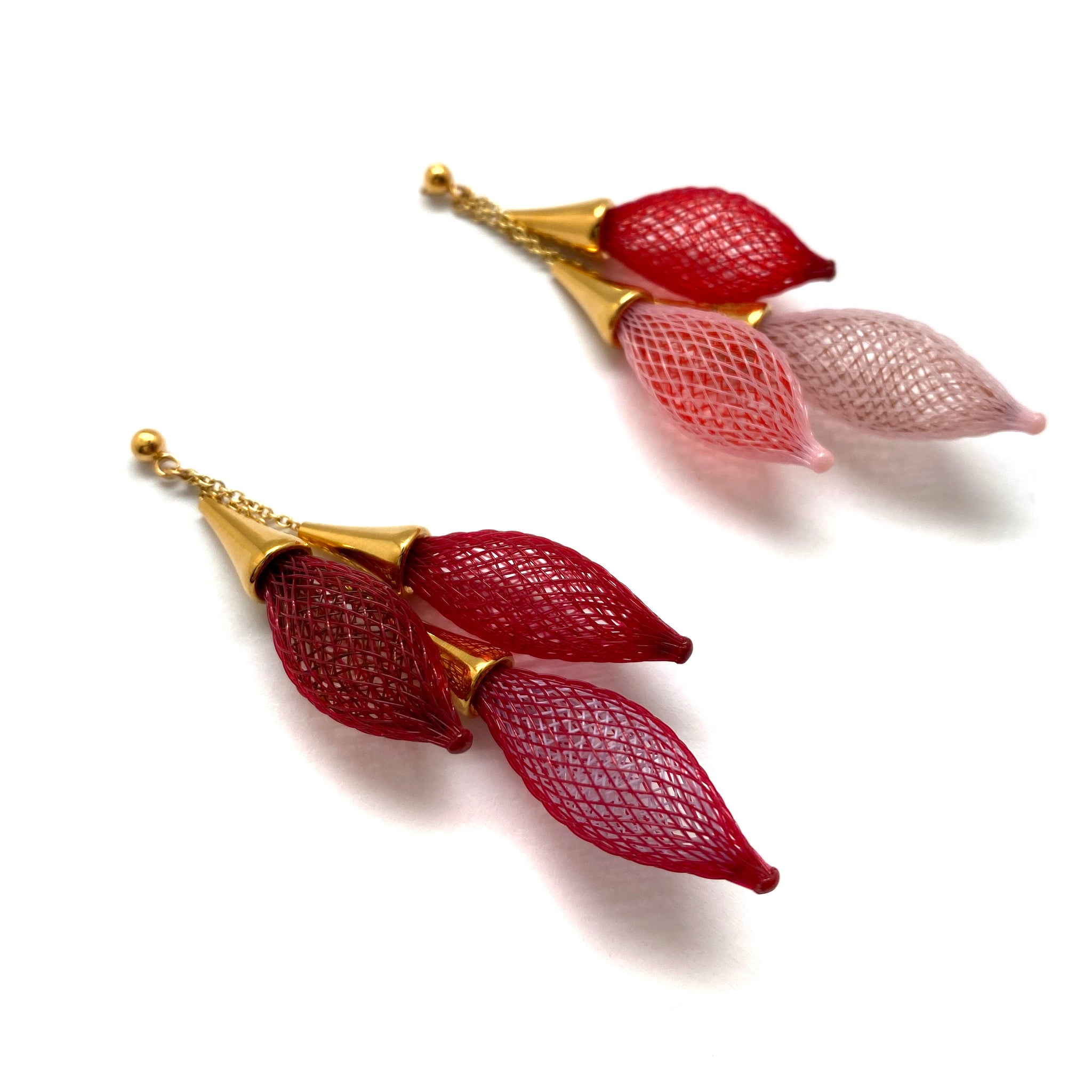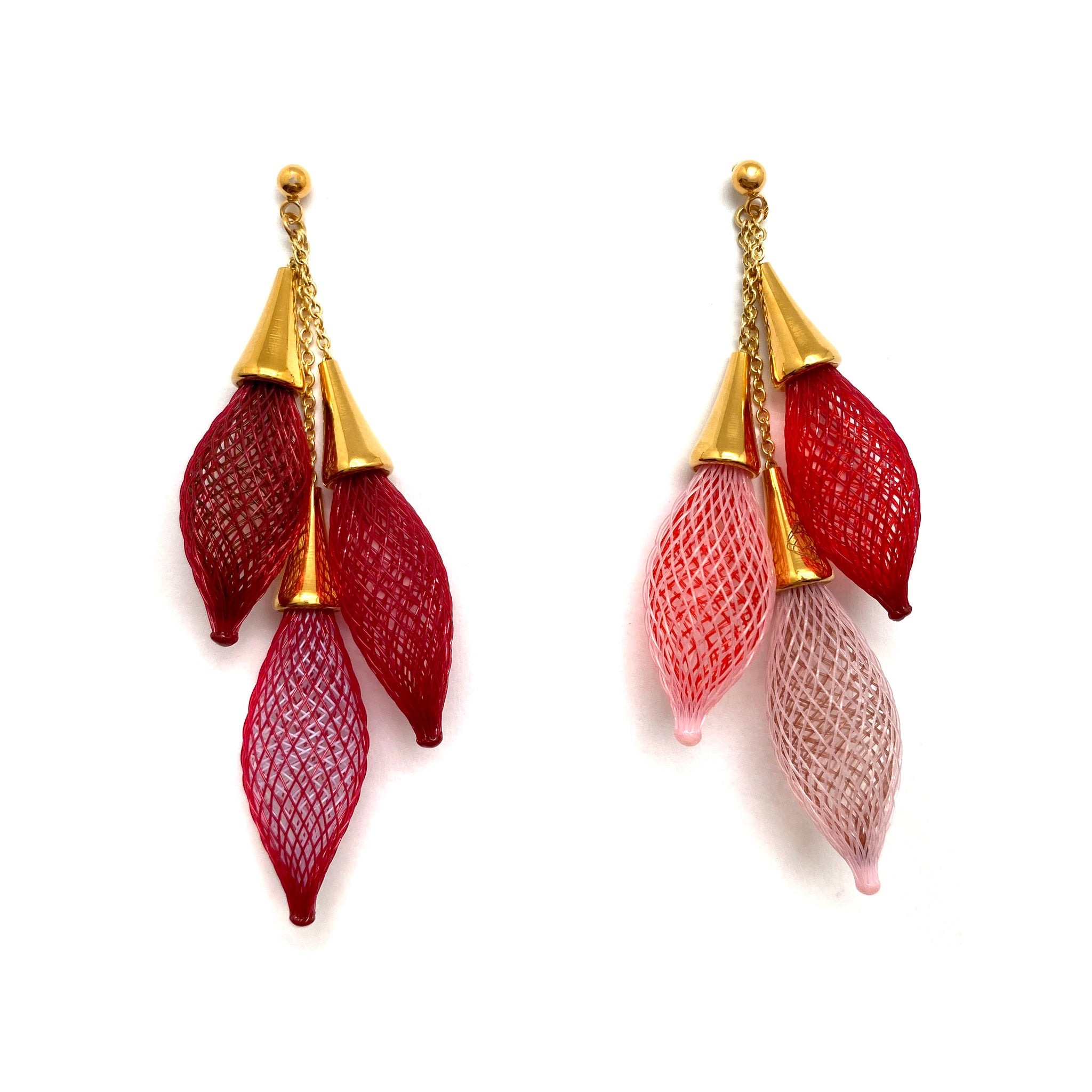 This multi-chrome pair from Dorine Decayeux feature a cascade of ombre reds and pinks. Pair them with Dorine's Red Pink Ombre Necklace to complete the set!