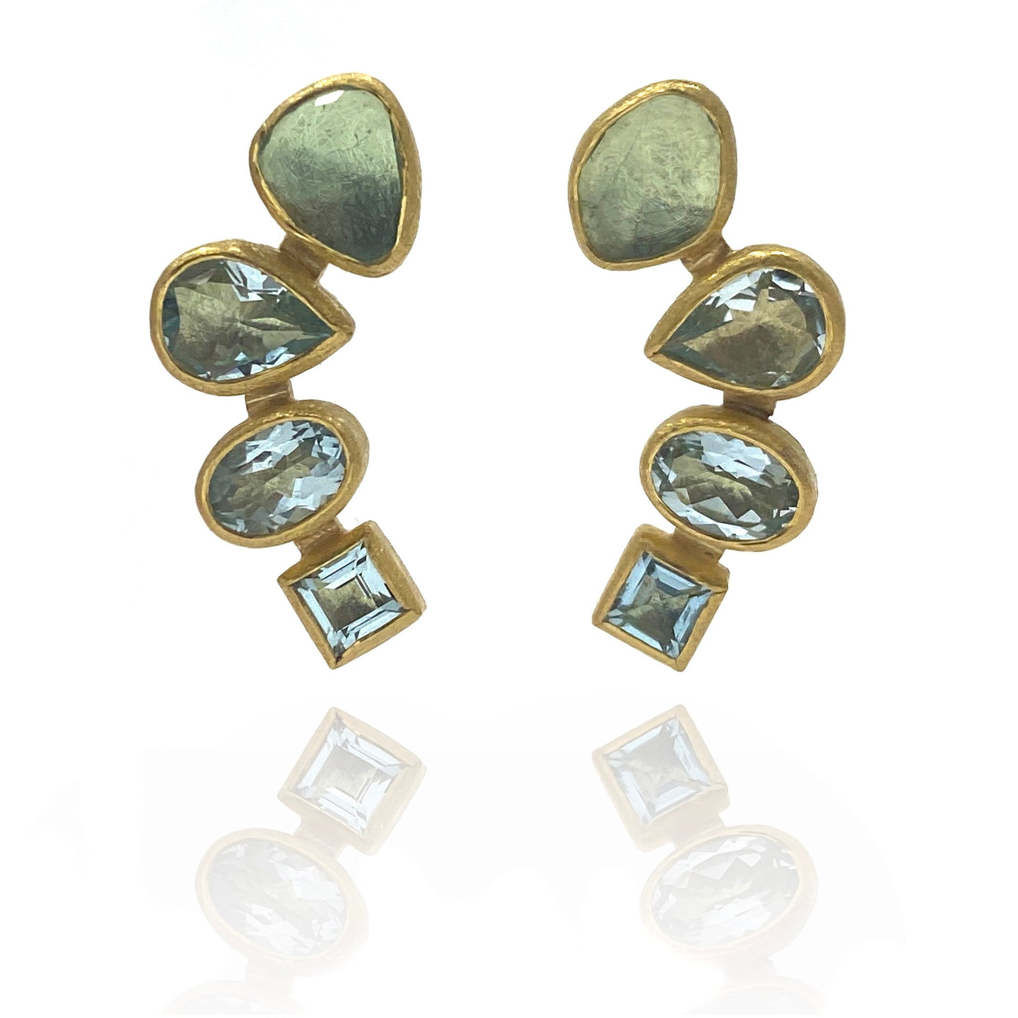 Made with fabulous faceted aquamarines, these statement studs by Petra Class will dress up your every day. A perfect pop of color, this pair of earrings will last you a lifetime.