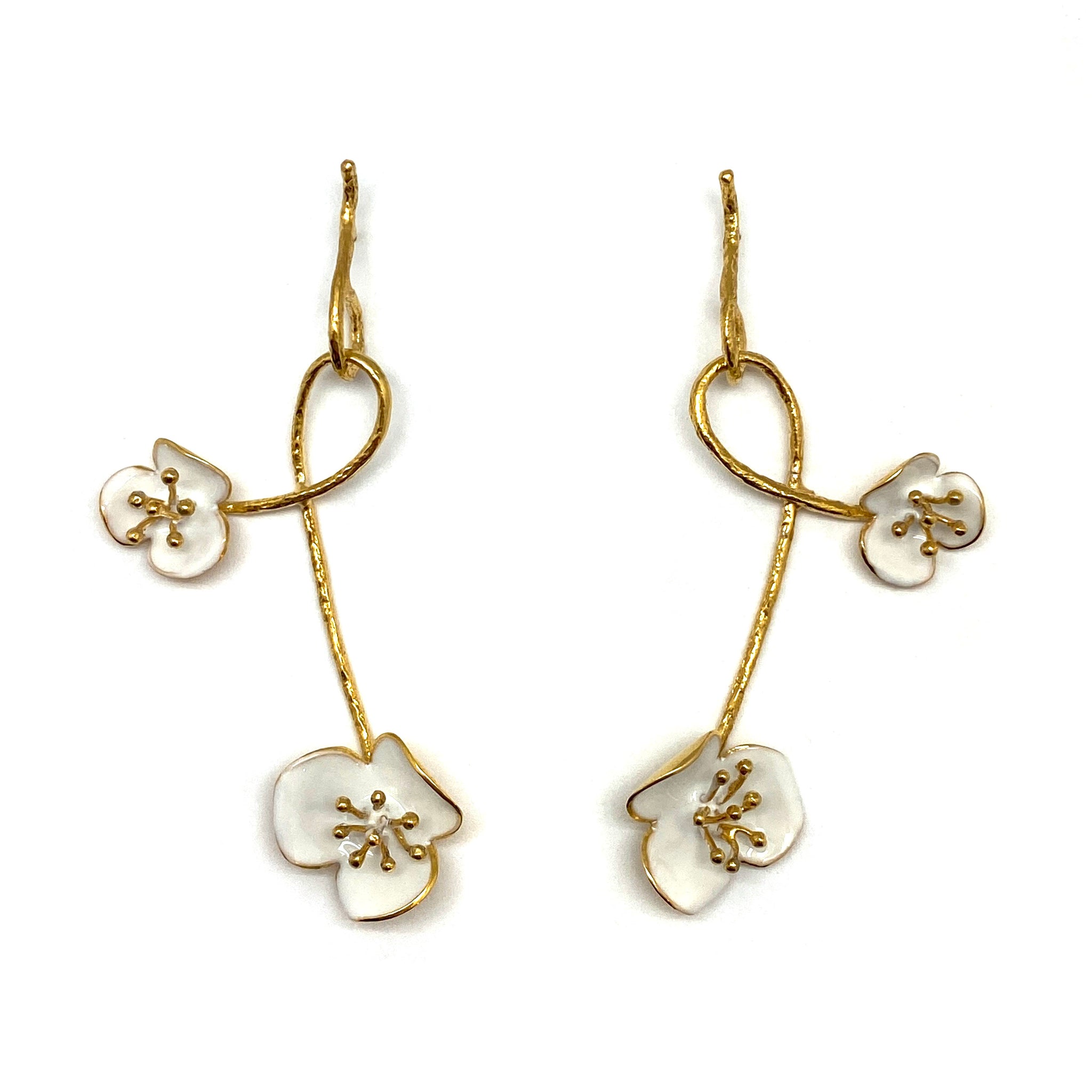 Fun and floral, these bright white enamel earrings will brighten any outfit! These earrings can be easily dressed up or down.