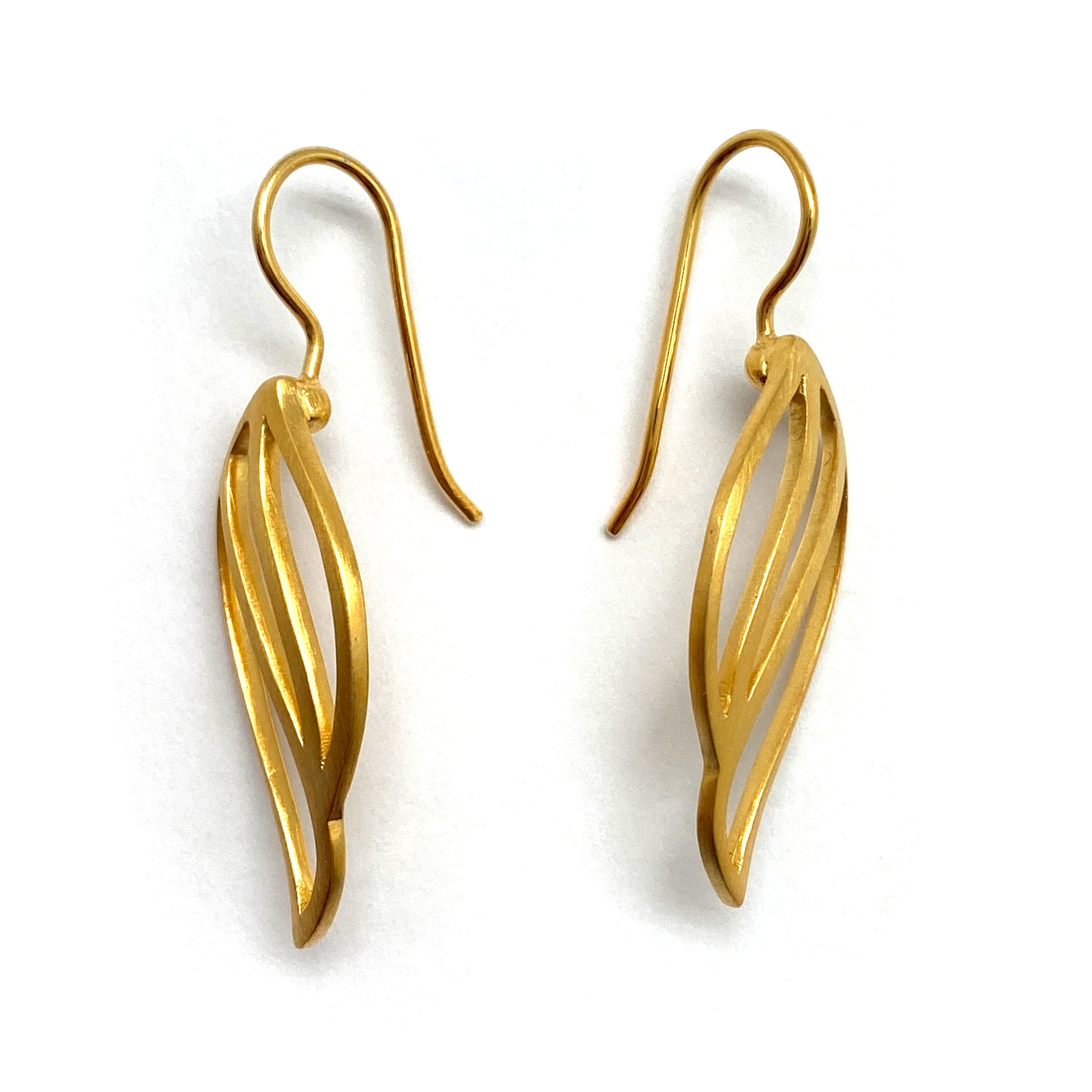 Take flight in these abstract wing earrings. Made in a shining gold vermeil, this pair are light and airy.Materials: Gold Vermeil