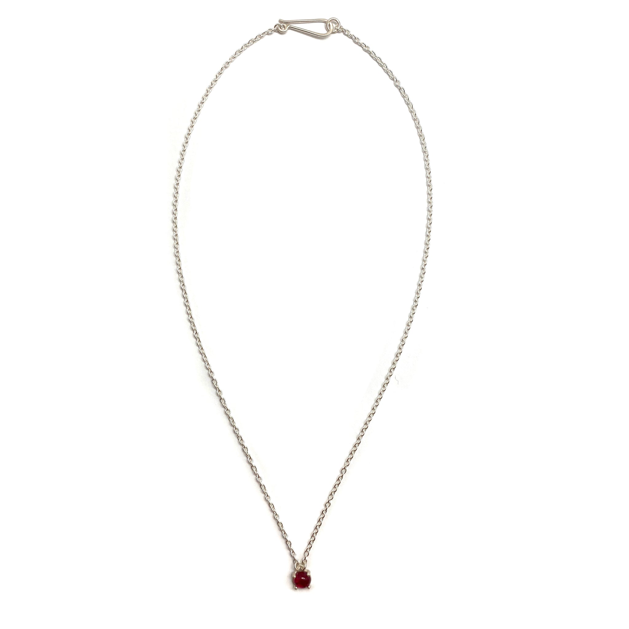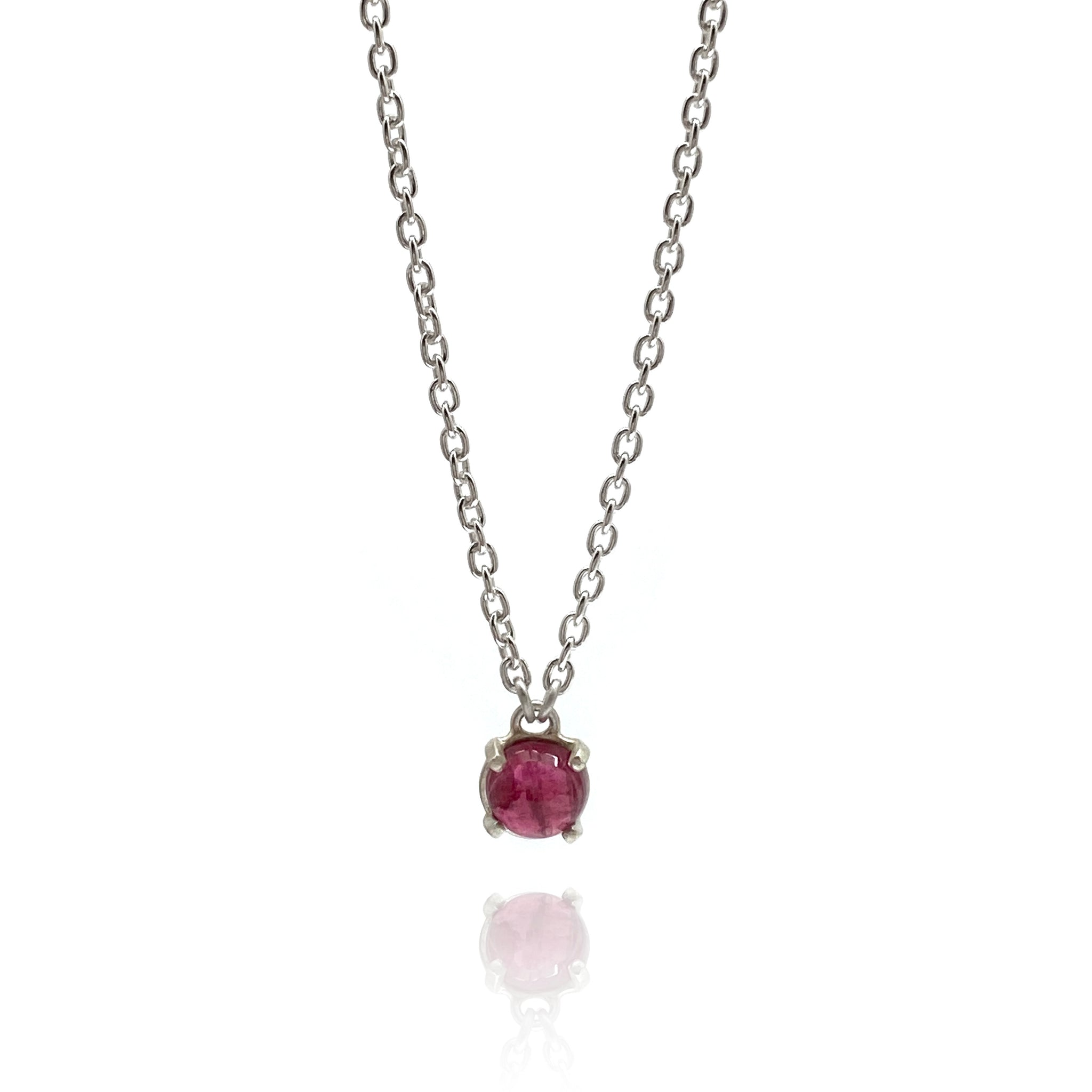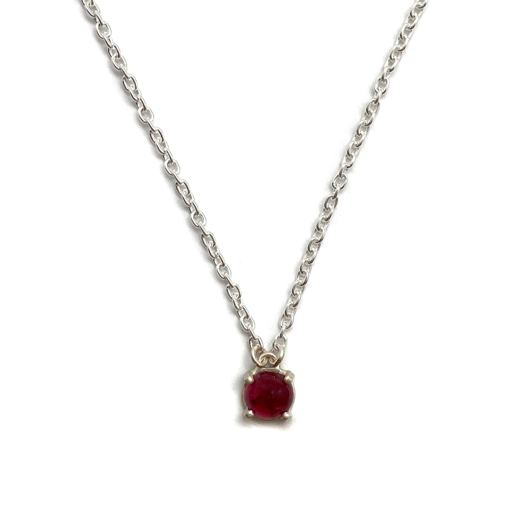 This petite pendant stars a prong set pink tourmaline. Suspended from bright sterling silver, this stone necklace is an easy, every day pop of color.
