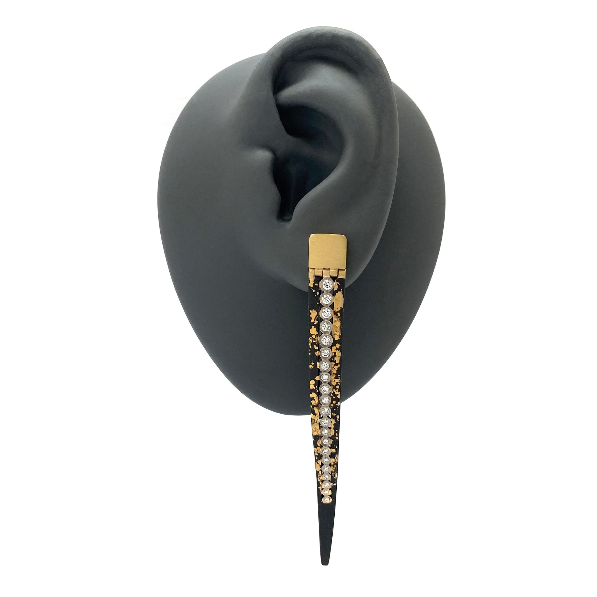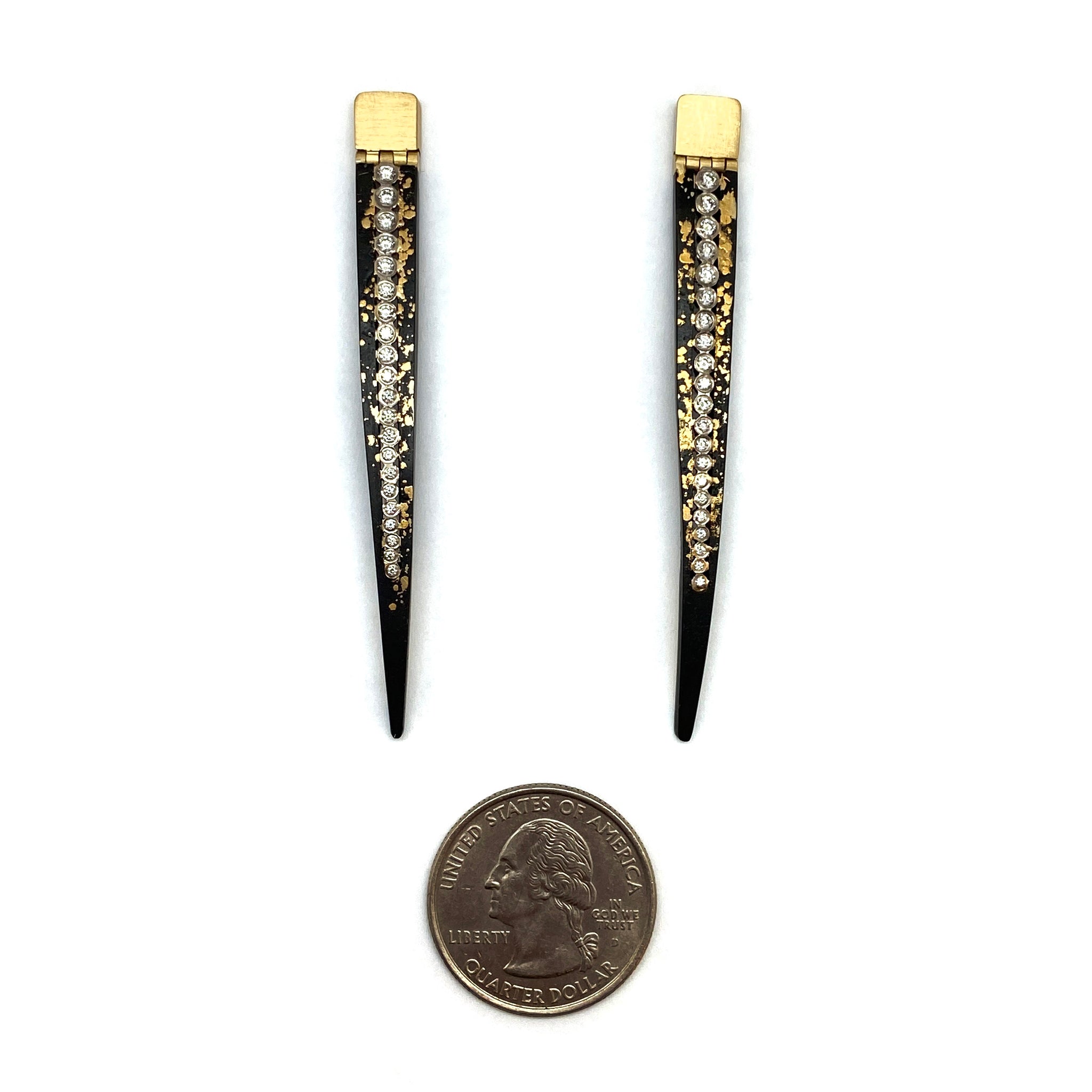 Perfect for the earring obsessed Pat Flynn fan, this pair are made with the same meticulous hinge mechanics of his iconic nail bracelets. Adorned with a row of diamonds, each nail earring is dusted with 22k gold that will last a lifetime. The hidden hinge post allows for a subtle sway with each wear.