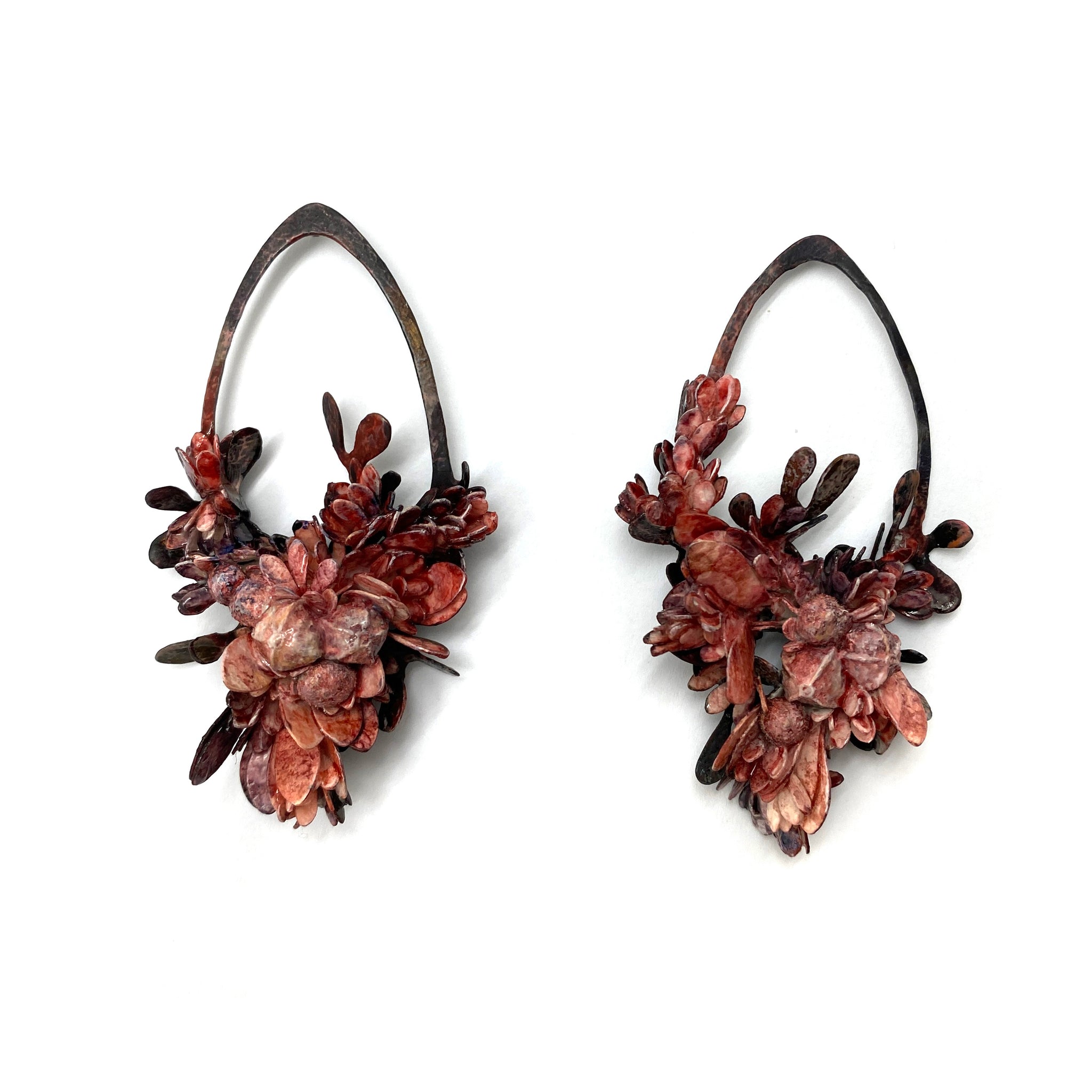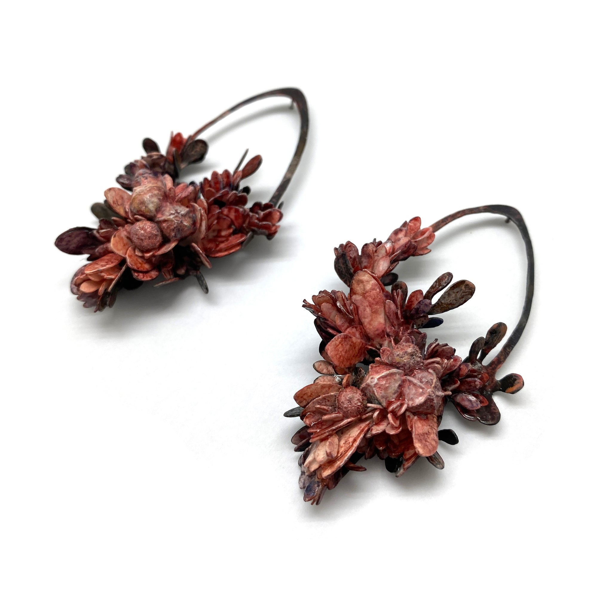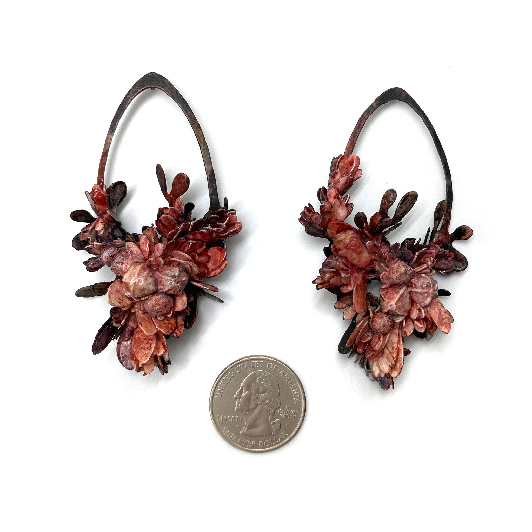 Materials: Seed Cases, Acrylic Paint, Lacquer, Paper, Brass, Sterling Silver Posts