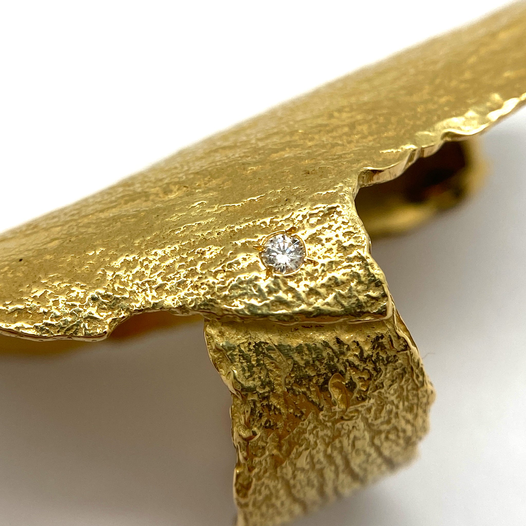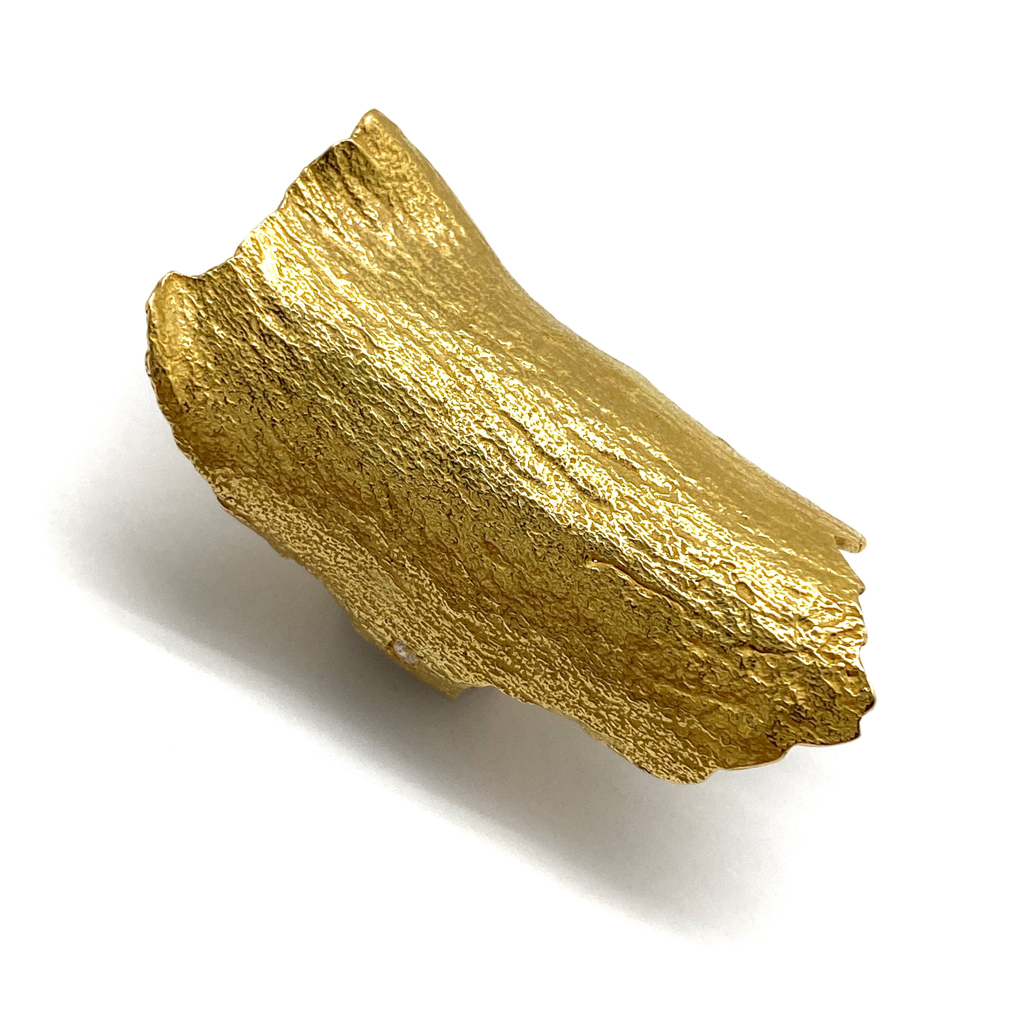 Emanuela Duca's signature "earth-bound" texture comes to life with this expressive gold ring. The flush set diamond sparkles and shines along with the textured metal and is sure to catch the eye.