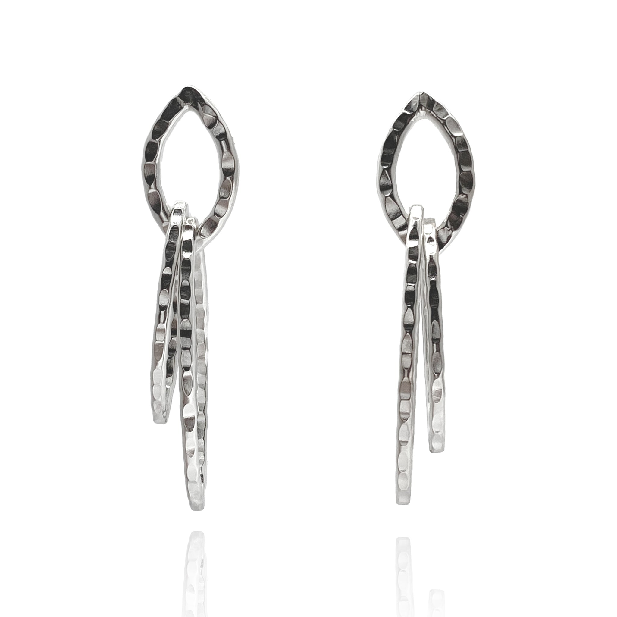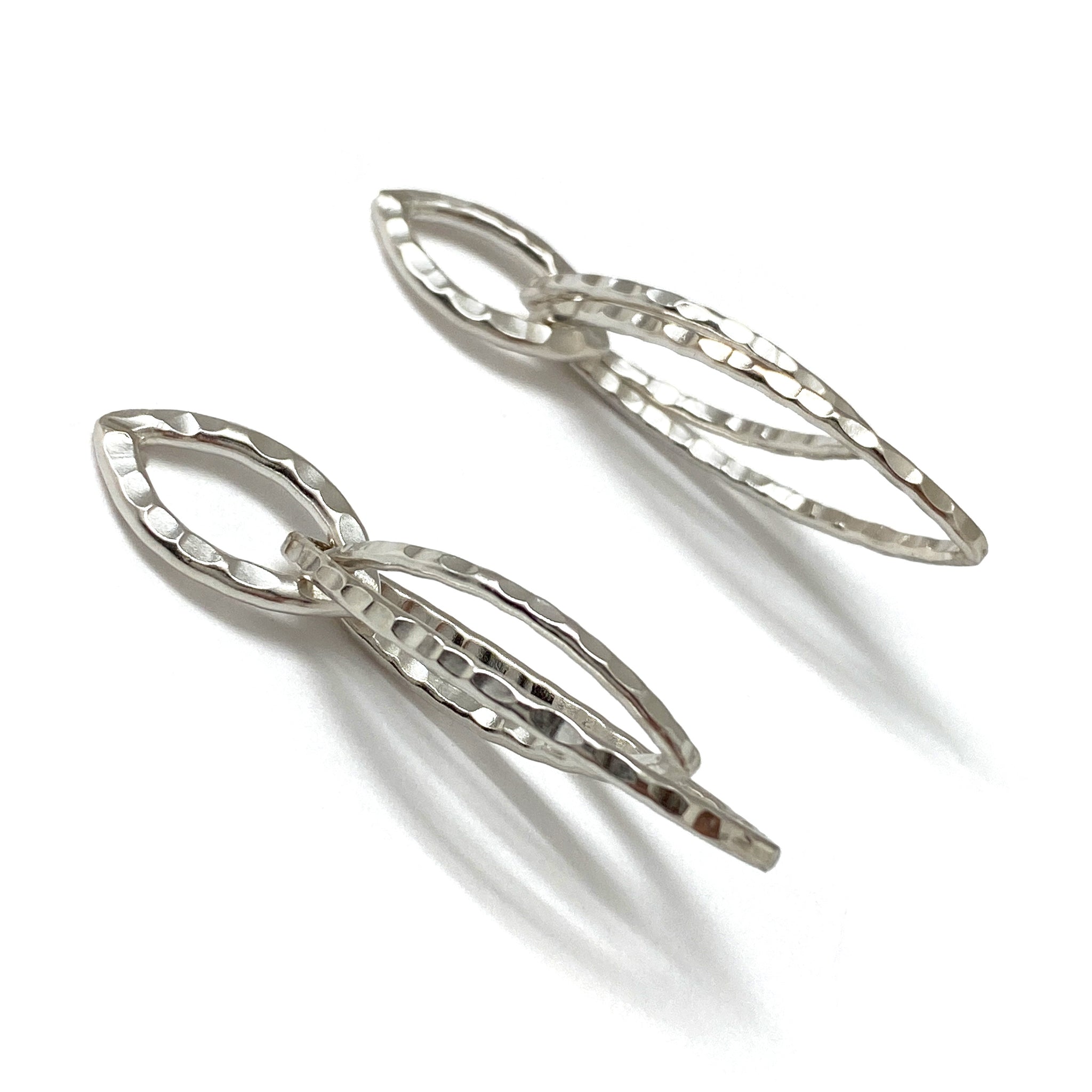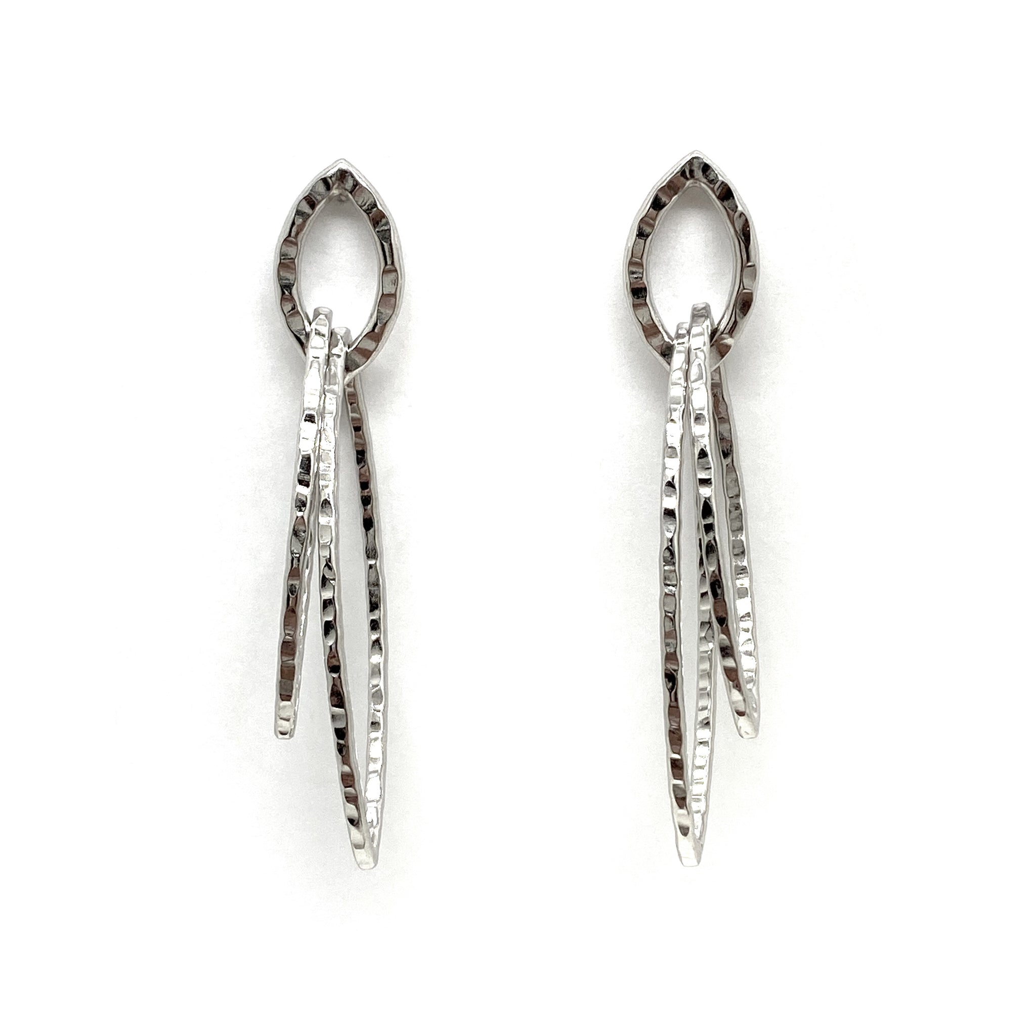 This pointed pair can be worn every day. Made with sterling silver, these post back earrings have a slight sway that catch the light.