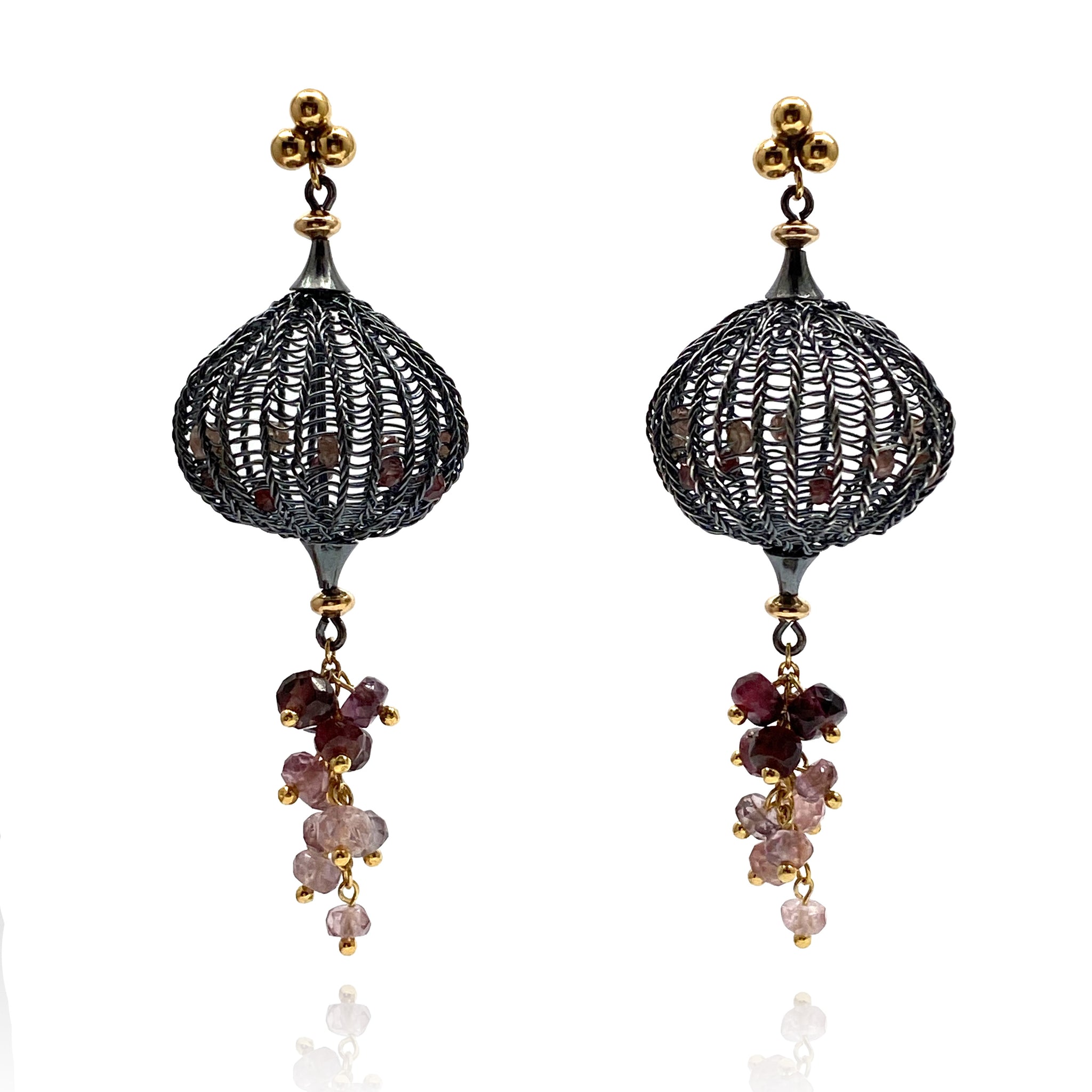 With a mix of dark oxidized sterling silver and ombre tourmalines, these earrings from Sowon Joo are an elevated statement. Suspended from gold fill posts, this pair have a satisfying sway.