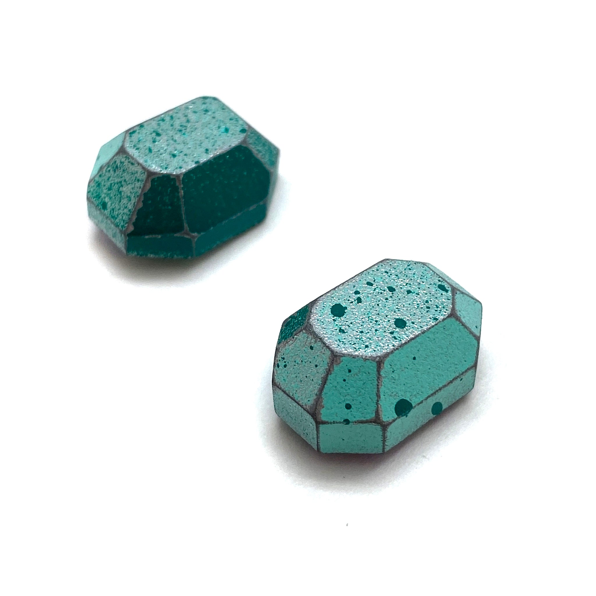 Dress up your every day with these 'gemstone' studs! Made with lightweight carved wood, this pair are have a shimmering blue sheen and are finished with sterling silver posts. These earrings pair perfectly with Eva's 3D Blue Gem Necklace!