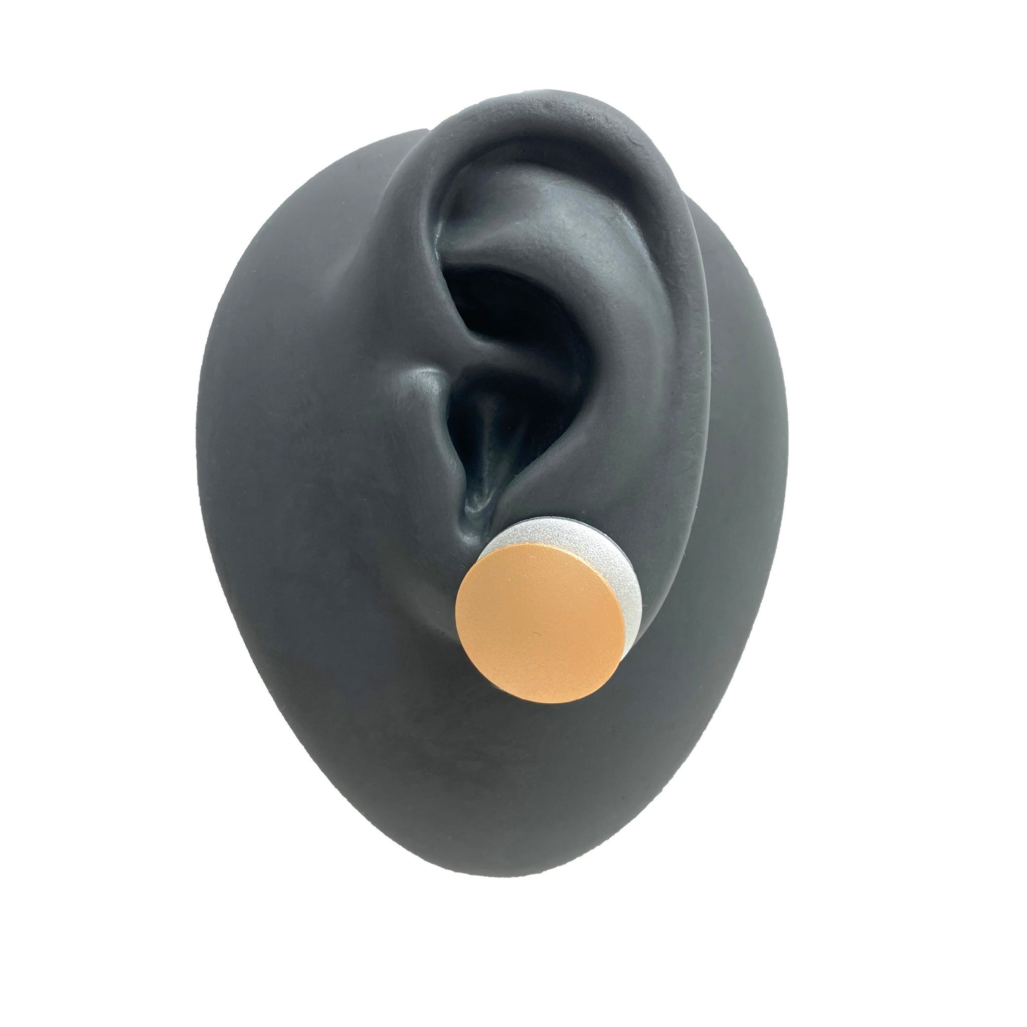 These gorgeous gold and silver circle studs are a great every day statement. Anodized aluminum pieces will not scratch, tarnish or fade which means these are a timeless pair of earrings!