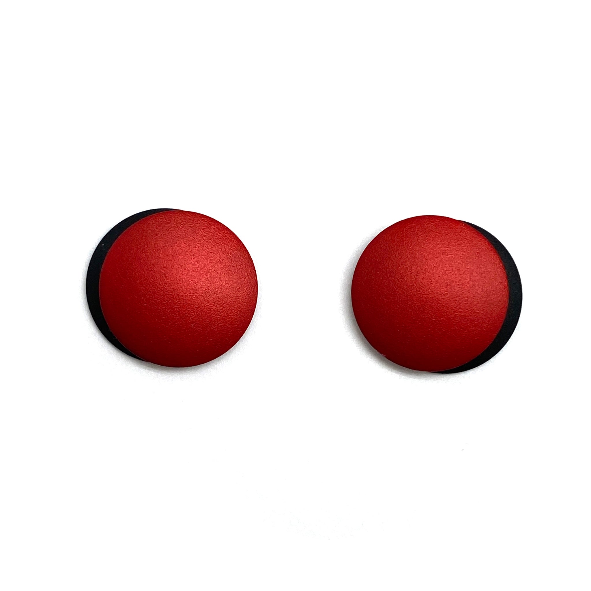 These bright red and black circle studs are a great every day statement. Anodized aluminum pieces will not scratch, tarnish or fade which means these are a timeless pair of earrings!