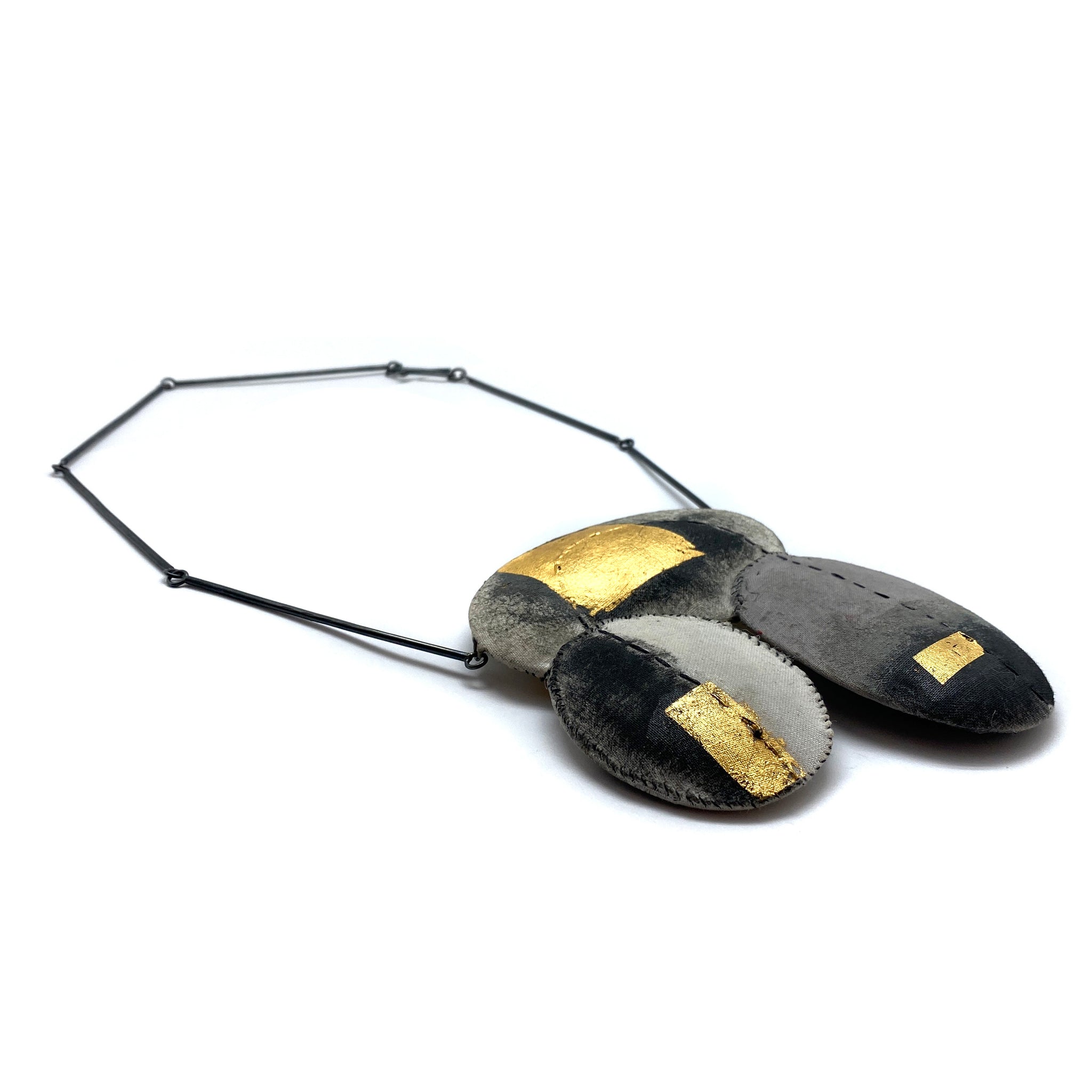 Materials: Sterling Silver, Silk, Thread, 23k Gold Leaf