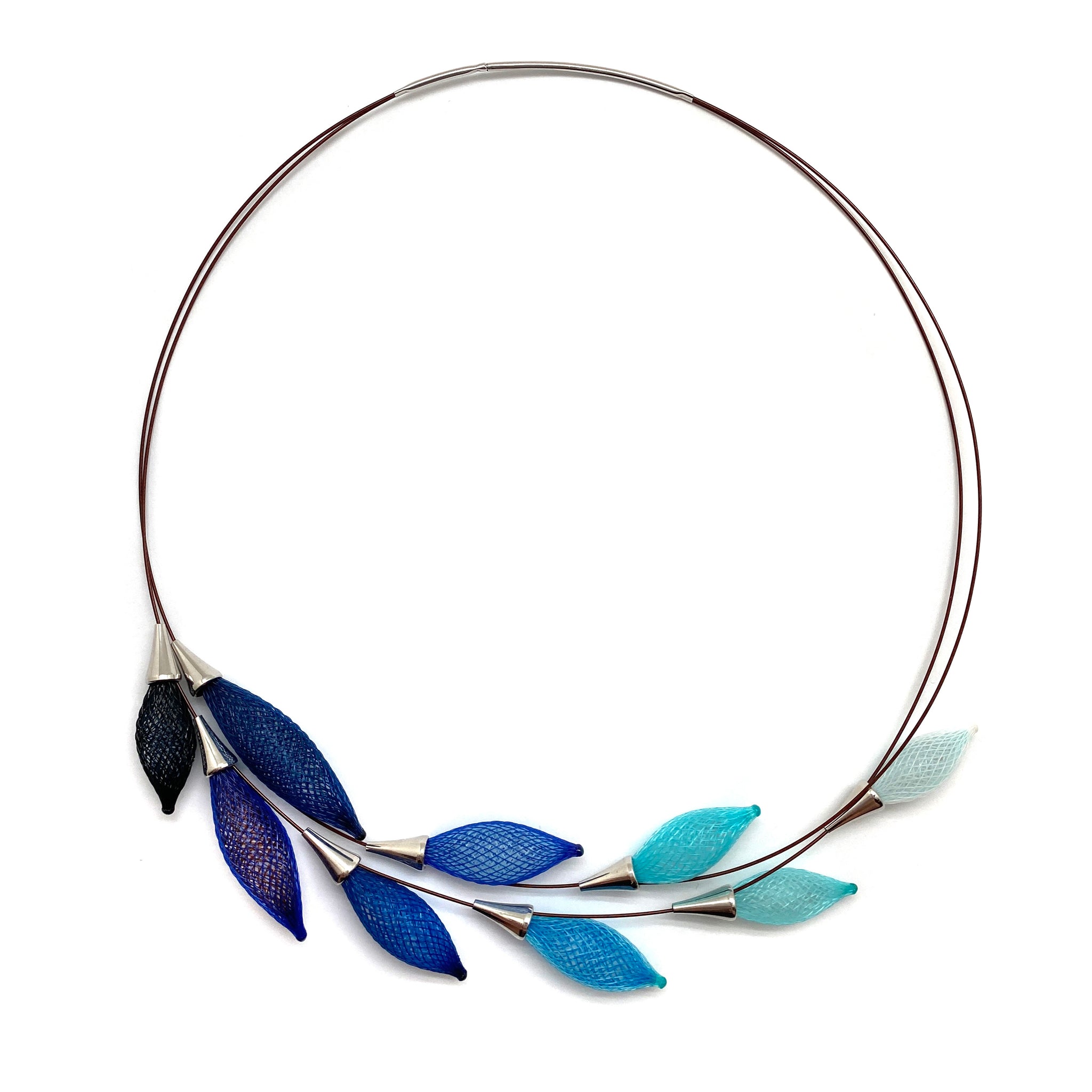 Utilizing her signature nylon pods, this lightweight, eye-catching collar from Dorine Decayeux is a multi-chrome must-have. Finished with a secure tube setting, this necklace is easy to take on and off. Pair them with Dorine's Blue Ombre Bundle Earrings to complete the set!