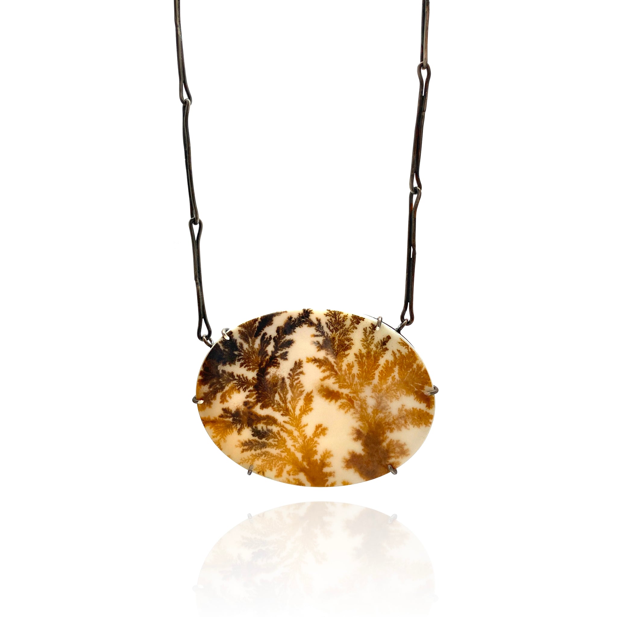 Made by Canadian artist Lori Francescutti, Dendritic Agate necklace is one of a kind. Every detail has been thoughtfully crafted, down to the handmade oxidized sterling silver chain.