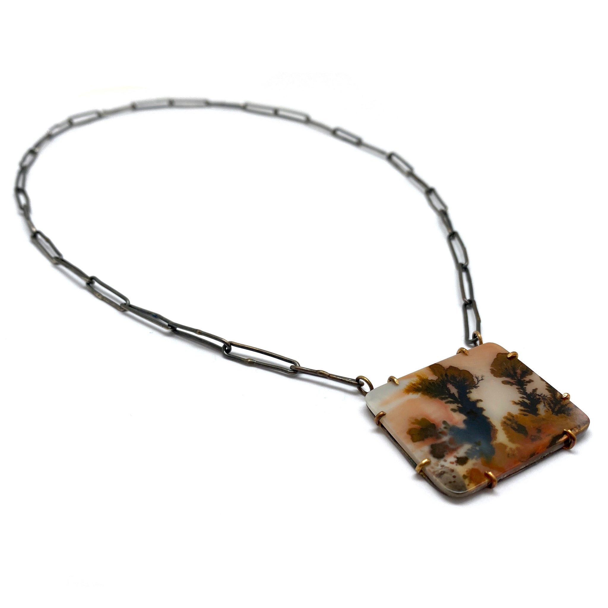 Materials: Dendritic Agate, Sterling Silver, 18k Gold