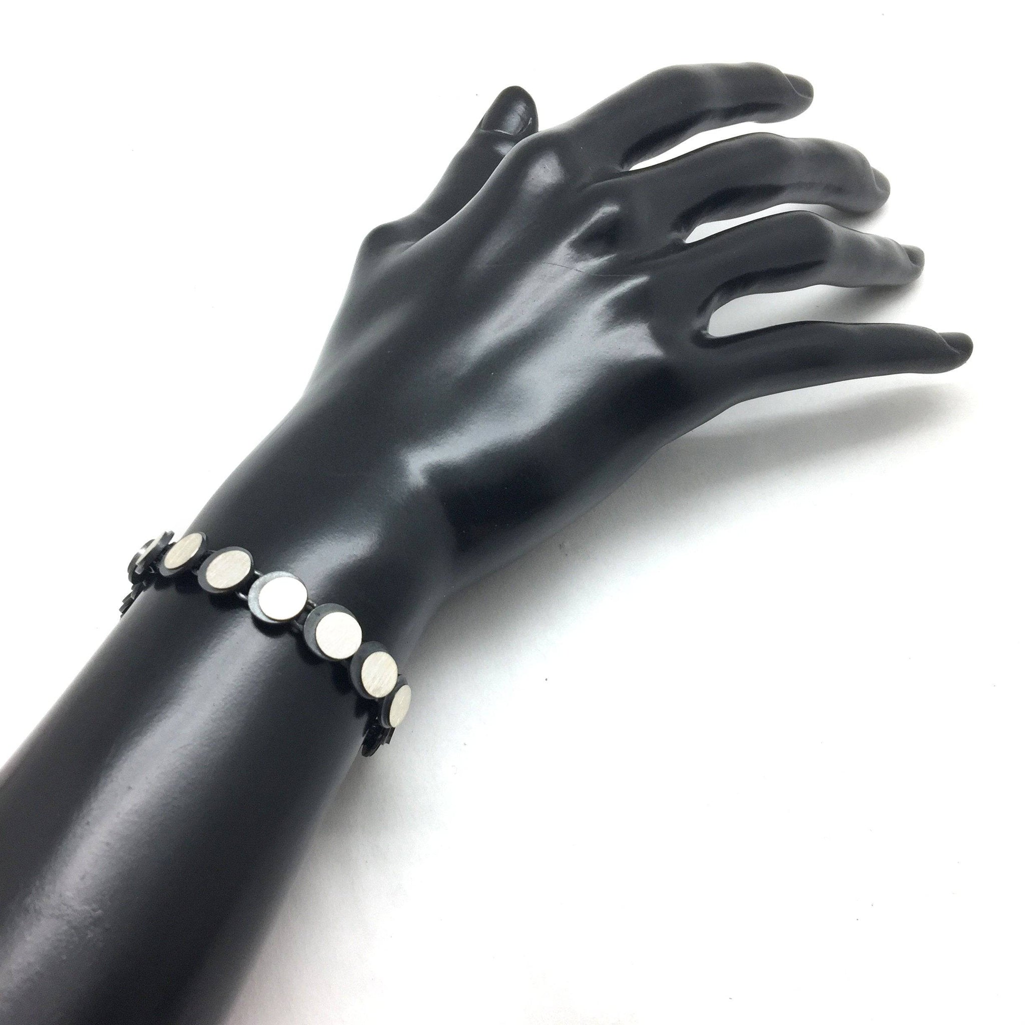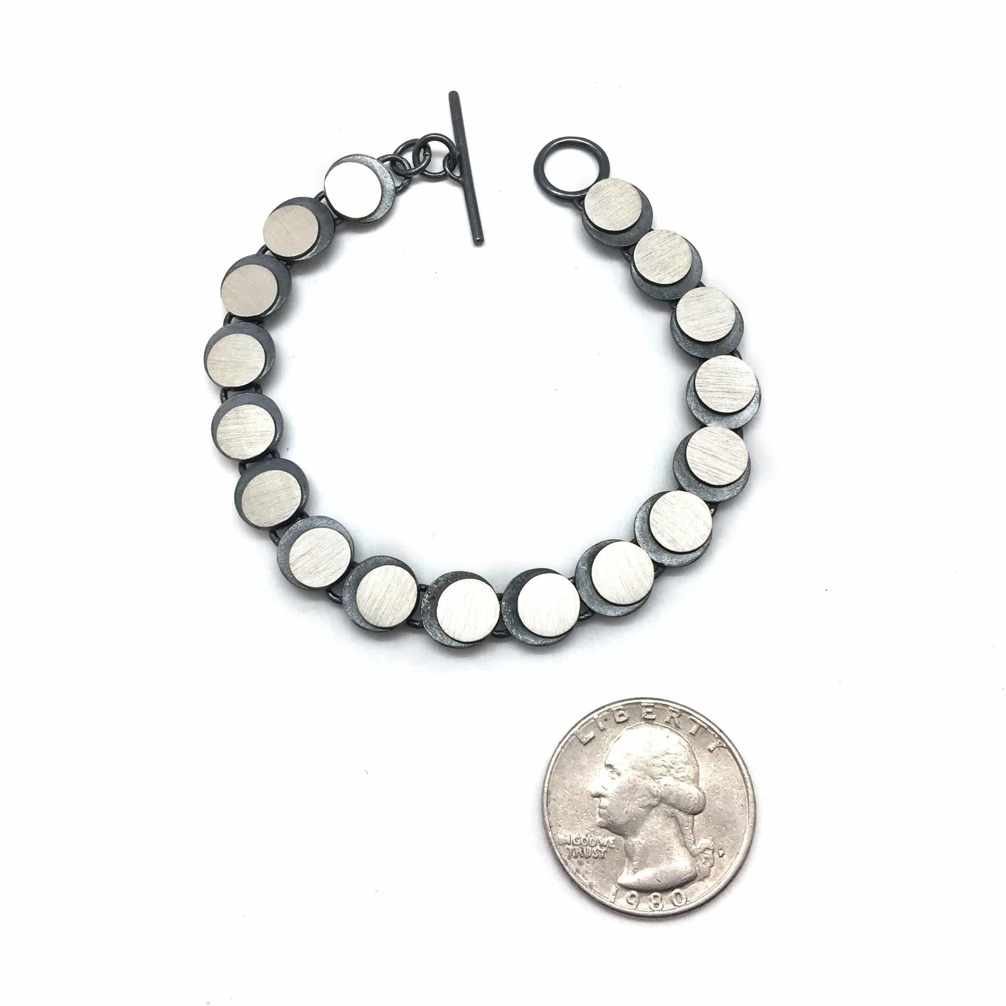 Oxidized sterling silver circles with slightly offset bright sterling silver circles.