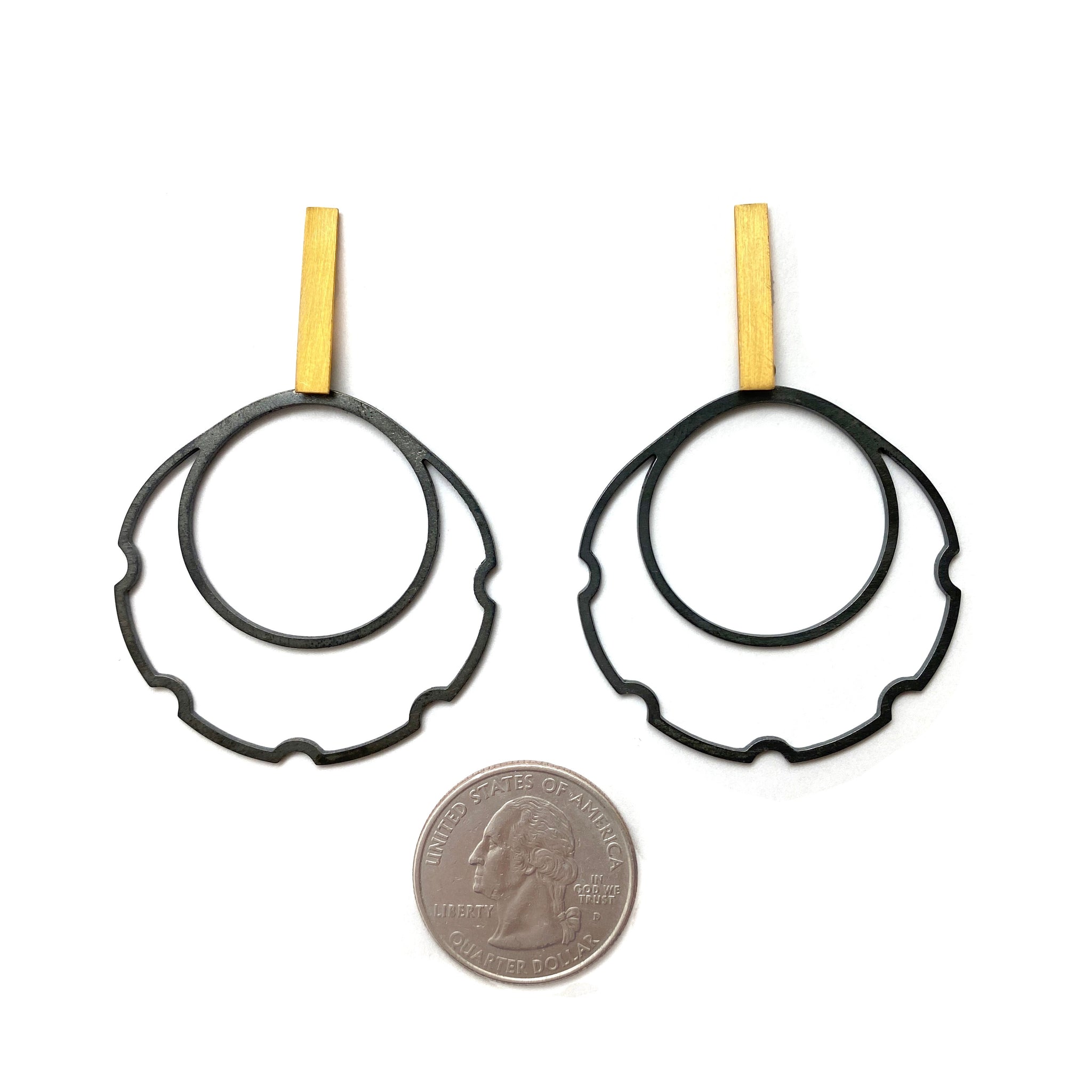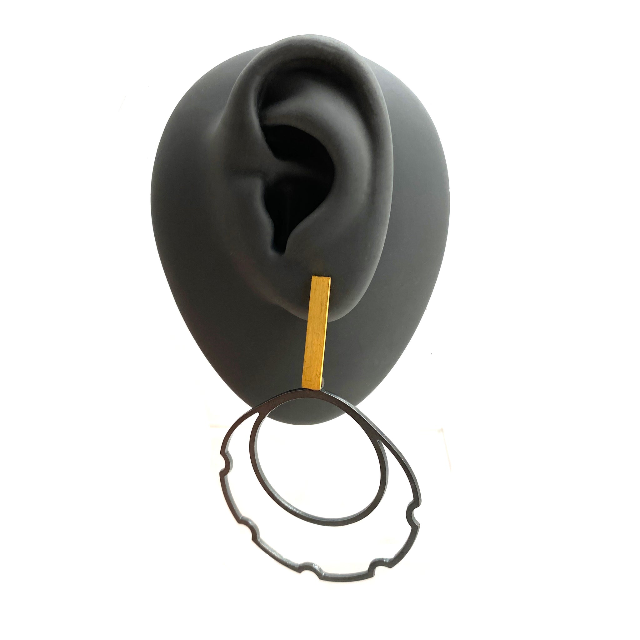 Suspended from gold vermeil posts, these ridged earrings utilize negative space to create a lightweight statement earrings. This pair are great to travel with as the classic gold and black will complete any outfit.