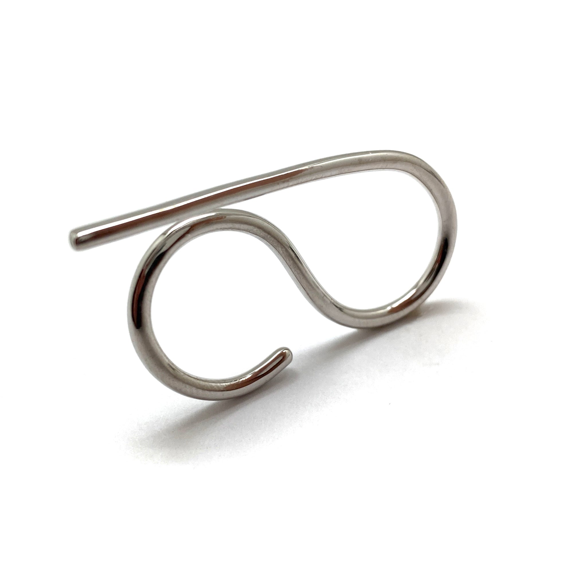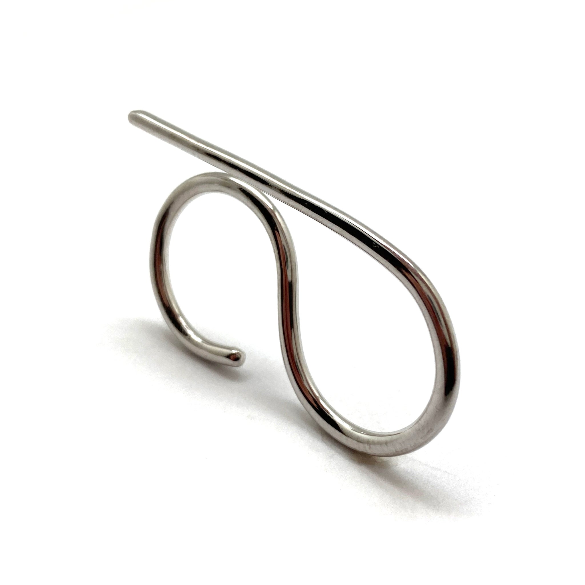 This ring from Theodora D has an organic, flowing feel. Two fingers go comfortably through the side-by-side bands and an accented line lays on top of the finger for an extra detail.